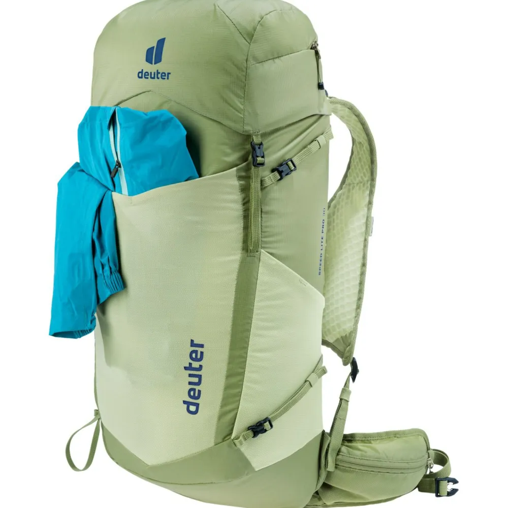 Der Speed Lite Pro 30 Wanderrucksack von Deuter sorgt für Tempo und Effizienz bei Wanderungen und Bergtouren! Reduziert auf das Wesentliche aber ohne Verzicht auf praktische Details bringt dieses Federgewicht eine optimale Gewicht-Komfort-Ratio auf die Waage und beansprucht minimal wenig Energie beim Tragen. Das gut belüftete LiteAir-Rückensystem und der bis in jedes Detail durchdachte Materialeinsatz leisten einen wesentlichen Beitrag zu diesem Komfort.