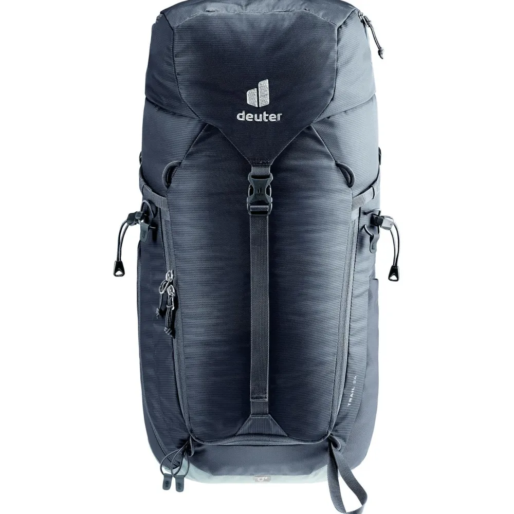 Wanderstöcke oder Eispickel lassen sich komfortabel außen am Tourenrucksack befestigen. Hüftflossen und der Brustgurt mit Pfeife lassen sich zum Klettern abnehmen. Die beiden elastischen Seitentaschen bieten Dir Platz für Trinkflaschen oder Ausrüstung. Seitliche Kompressionsriemen sowie ein Wertsachenfach im Inneren lassen keine Wünsche offen. Die abnehmbare Regenhülle, ein integriertes SOS-Label sowie das abnehmbare Deckelfach machen den deuter Trail 24 zum idealen Partner am Berg.