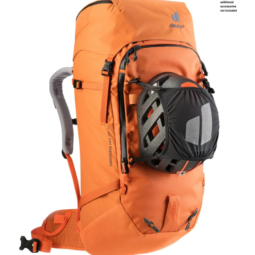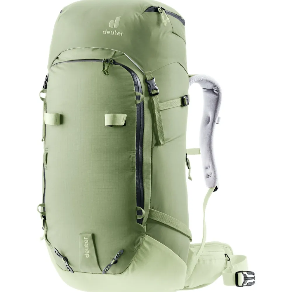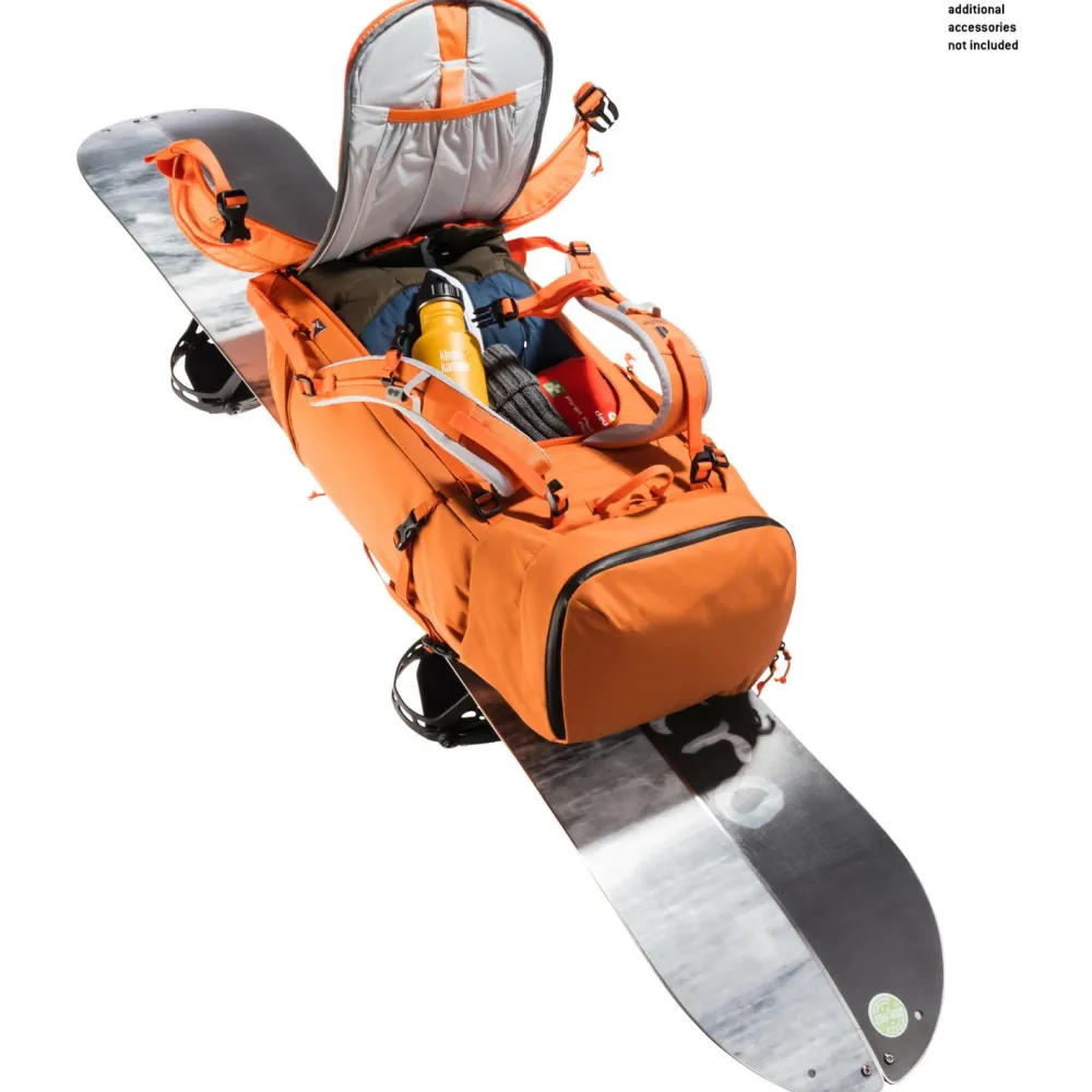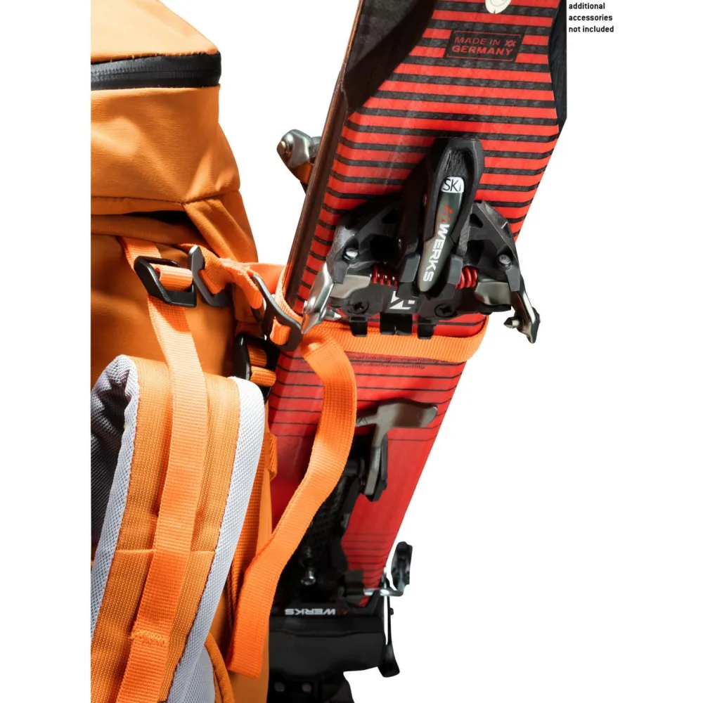 Mit erweiterbaren 38 Liter Stauraum bietet der Women’s Freescape Pro 38+ SL Skitourenrucksack von deuter eine Menge Platz für mehrtägige Skitouren oder Touren mit viel Gepäck. Am Rucksack lassen sich entweder Ski oder Snowboard befestigen und auch für Steigeisen, Eispickel und Kletterseil sind die entsprechenden Fixpunkte vorhanden. Für Skitouren, Skibergsteigen und Freeride bietet der Skitourenrucksack damit hohe Flexibilität für alle Einsatzbereiche. deuter stattet den bluesign zertifizierten Wintersportrucksack mit dem Alpine Rückensystem und einem stabilen Delrin U-Rahmen aus. Die gepolsterten Schulterträger und Hüftflossen sind wie die Rückenlänge und Rückenbreite perfekt für Frauen zugeschnitten und garantieren Skifahrerinnen und Snowboarderinnen exzellenten Tragekomfort und tolle Beweglichkeit. Mit extra LVS Fach, Brillenhalterung und praktischem Reißverschluss, den über den Rücken direkten Zugang zum Hauptfach ermöglicht, rundet deuter seine Skitourenausstattung am Women’s Freescape Pro 38+ SL gekonnt ab.