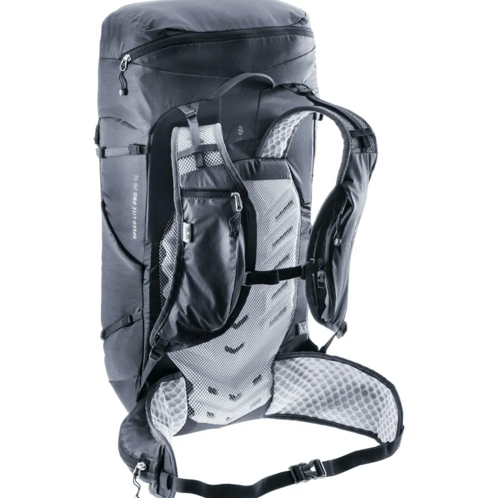 Breite, ergonomisch geformte und stark durchlüftete Schulterträger mit anschmiegsamen Hüftflossen sorgen für einen körpernahen und stabilen Sitz. Die Last wird ideal verteilt, der Druck auf den Schultern vermindert und der Rücken entlastet. Hinzu kommt eine übersichtliche Platzierung und Einteilung der Taschen und Befestigungsschlaufen. Dadurch garantiert der Speed Lite Pro SL 28, dass alle Energie voll und ganz fürs Wandern zur Verfügung steht!
