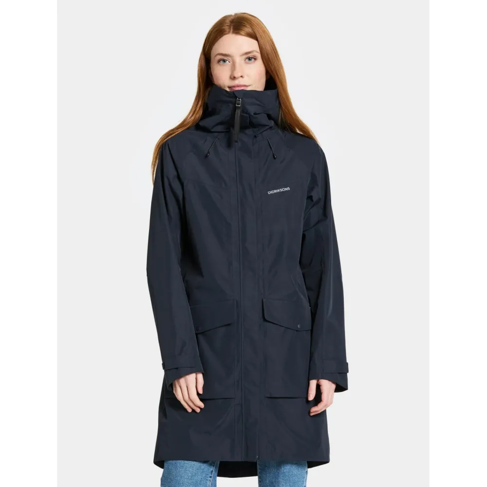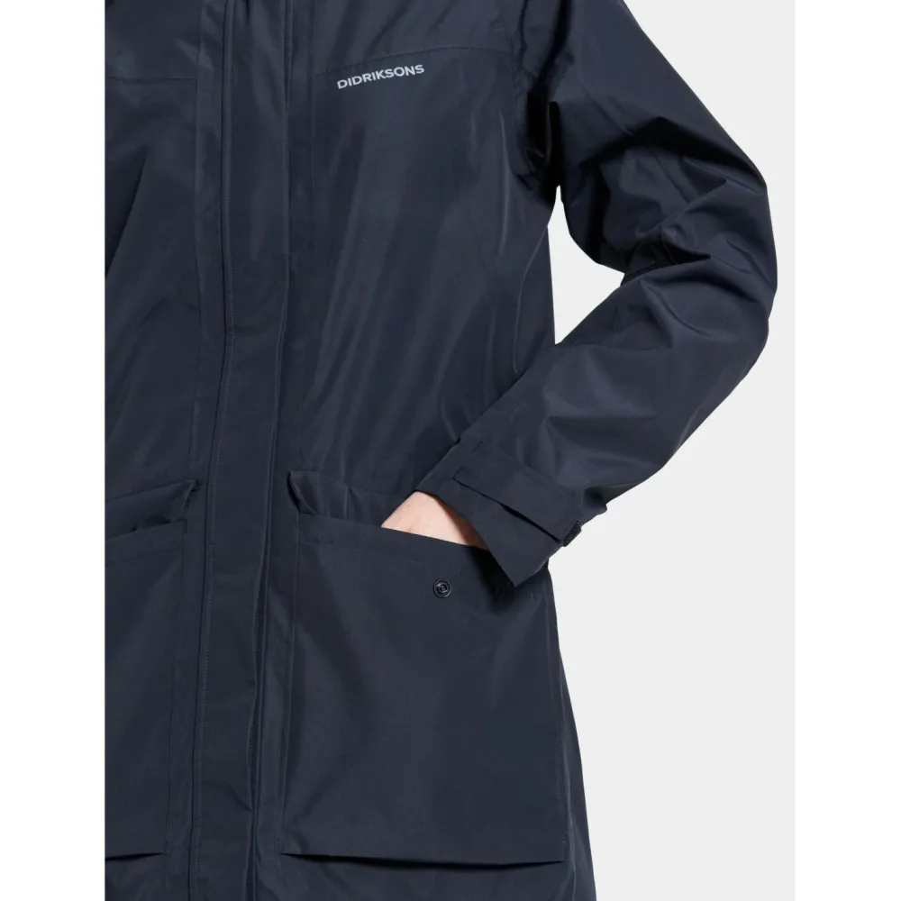 Der Klara Women’s Parka von Didriksons vereint Funktionalität und Stil, und ist der ideale Begleiter für Deinen Alltag bei schlechtem Wetter, aber auch verschiedene Outdoor-Aktivitäten. Dieser Parka ist vollständig wind- und wasserdicht, mit versiegelten Nähten konstruiert und aus atmungsaktivem Material gefertigt, damit Du bei jedem Wetter optimal geschützt, aber dennoch komfortabel unterwegs bist. Die feste Kapuze lässt sich in zwei Richtungen verstellen, sodass Du sie ideal an Deine individuellen Bedürfnisse anzupassen kannst.
