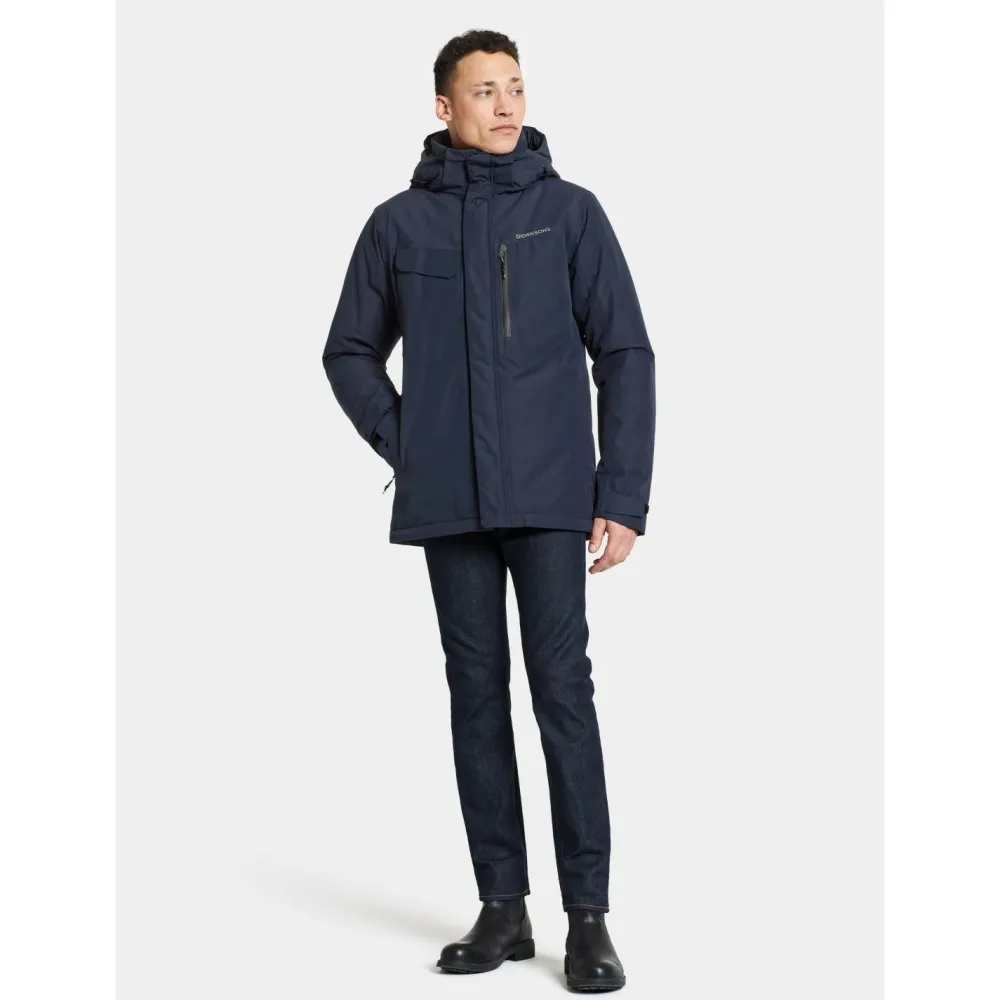 An regnerischen Tagen ist der Stefan USX Jacket von Didriksons der ideale Partner! Dank wasser- und winddichtem Material schützt er Dich zuverlässig vor widrigen Bedingungen. Zudem ist das Material atmungsaktiv, damit sich innen keine Feuchtigkeit anstaut. Mit der synthetischen Füllung wirst Du angenehm gewärmt. Der Parka kommt mit geräumigen Taschen daher, in denen Du Kleinigkeiten sicher unterbringst. Reflektierende Details runden das Konzept ab!