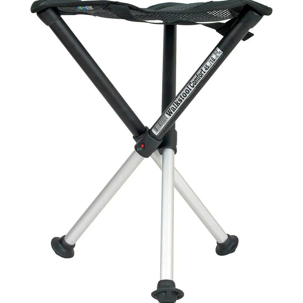 Eignet sich perfekt zum Campen, Angeln oder den heimischen Garten: Der Dreibeinhocker Comfort Campingstuhl von Walkstool. Das Besondere: Die Beine lassen sich einfahren, was ihn besonders kompakt und leicht zu transportieren macht. Seine Sitzfläche aus Mesh ist sehr bequem und seine Aluminium-Beine leicht und robust. Der Dreibeinhocker Comfort Campingstuhl ist ein geniales Teil, mit vielfältigen Einsatzmöglichkeiten.