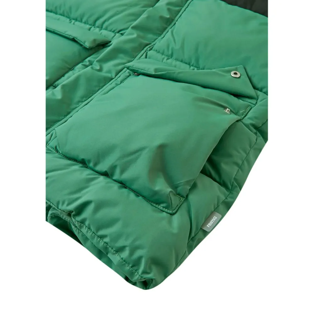 Praktische Details machen diese Jacke zum perfekten Alltagsbegleiter. Zwei Fronttaschen bieten ausreichend Platz für kleine Schätze oder wichtige Utensilien, die Du unterwegs benötigst. Diese durchdachten Details zeigen, dass Reima nicht nur auf Funktionalität und Schutz achtet, sondern auch den praktischen Bedürfnissen von Kindern gerecht wird.