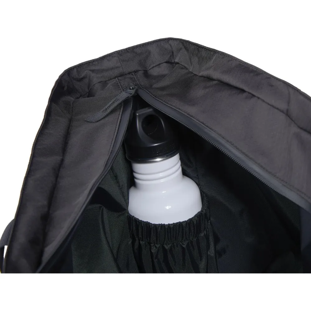Das Hauptfach der Tasche wird sicher mit einem Reißverschluss und einer Schnalle verschlossen. Die Schnalle ist in der Länge anpassbar, sodass Du beispielsweise eine Yogamatte bequem auf der Tasche befestigen kannst. Die Breite der Tasche lässt sich mit Druckknöpfen individuell anpassen, damit Du immer genau den Platz hast, den Du benötigst. Zwei seitliche Taschen bieten Platz für Deine Trinkflaschen, und das Frontfach mit Schlüsselclip sorgt dafür, dass Du Deine Schlüssel immer griffbereit hast.