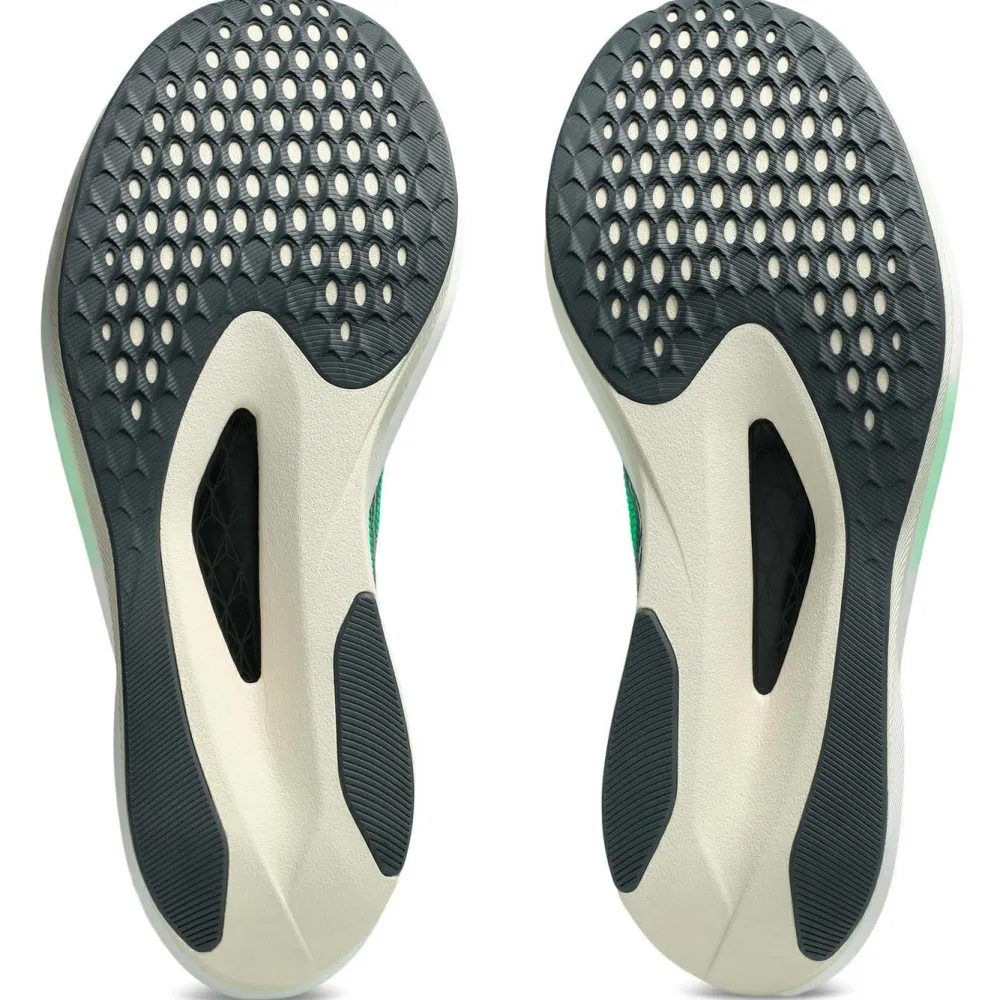 Eine durchgehende Carbonplatte unterstützt das Vorwärtsrollen des Fußes und sorgt für ein direkteres und stabileres Abdruckgefühl. Zusätzlich wurde die Sprengung auf 7 mm reduziert und die Gesamthöhe der Sohle abgesenkt. Unter dem Fuß bietet ASICSGRIP zuverlässigen Halt, während recycelte Bestandteile im Obermaterial die Herstellung ressourcenschonender machen.Also Schuhe an und mit Tempo durchstarten.