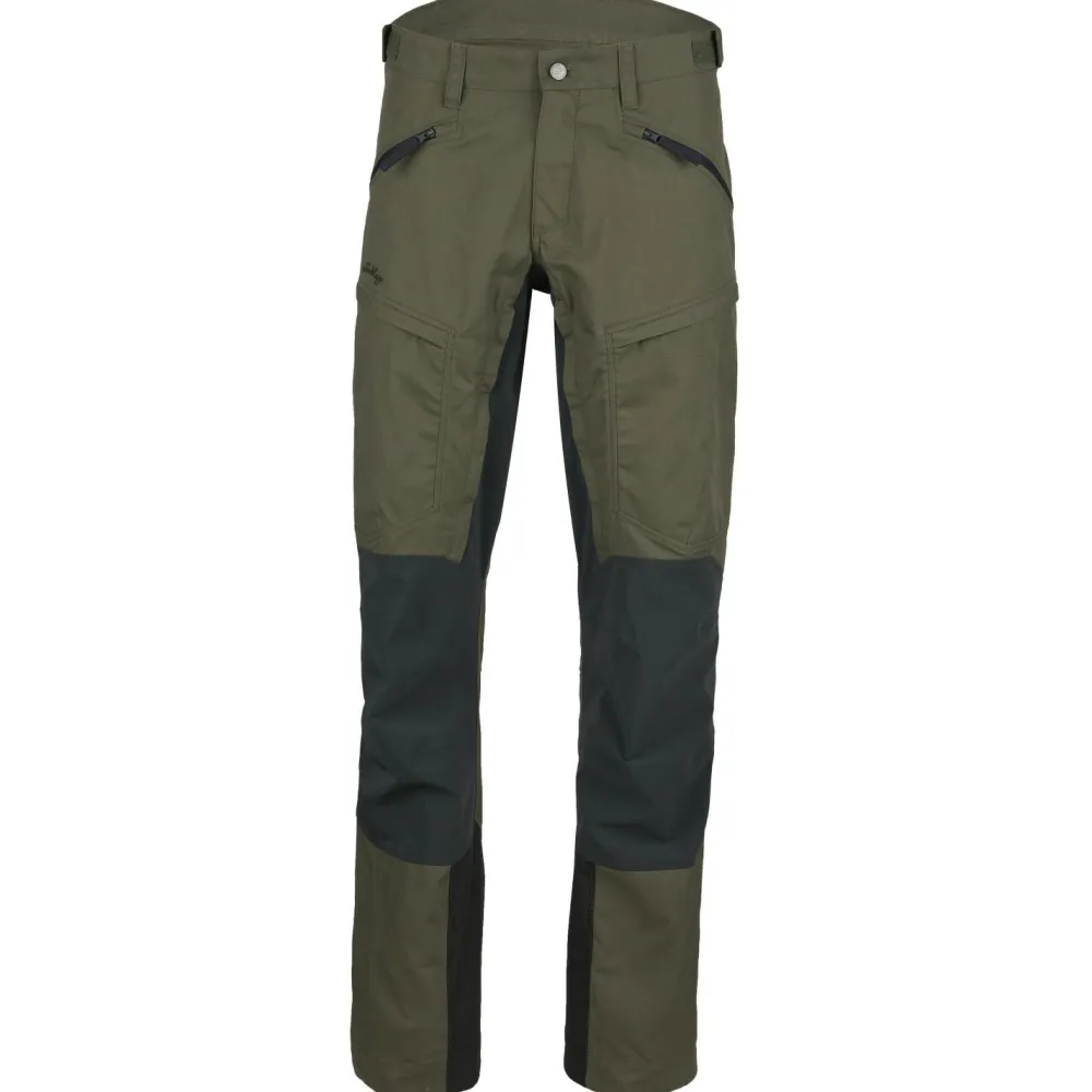 Die Makke Pro Pant von Lundhags ist die Weiterentwicklung der Makke Pant für kältere Tage und eine äußert robuste und warme Tourenhose! Durch das dehnbare und dreilagige 4-Wege-Material an Knien und auf der Rückseite ist sie bestens für fordernde Touren geeignet. Die Robustheit der Hose zeigt sich vor allem im gewachsten, wasserabweisenden Hauptmaterial, das zusätzlich genügend Bewegungsfreiheit bietet. Auch ein Haken, mit dem sich die Makke Pro am Schuh befestigen lässt, und verstellbare Weiten an Hüfte und Beinende sorgen für maximalen Komfort. Die Elemente werden von der Makke Pro verlässlich vom Körper ferngehalten, aus dem Inneren kann dank der Belüftungsöffnungen an der Innenseite des Oberschenkels und der allgemeinen Atmungsaktivität von 16.000 g/m² pro Tag aber ausreichend Feuchtigkeit entweichen. Ein kalter Tag, eine lange und anstrengende Trekkingtour steht bevor – mit der Makke Pro Tourenhose von Lundhags bist du bestens vorbereitet.