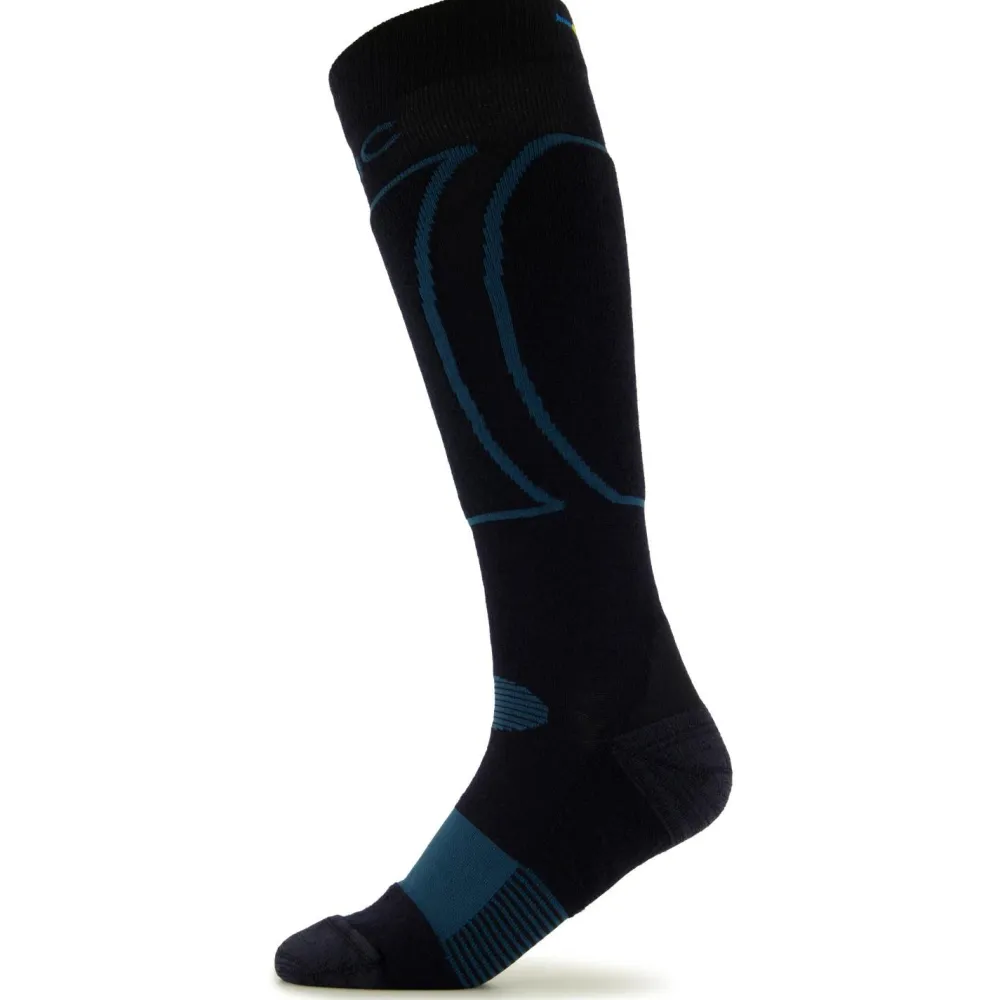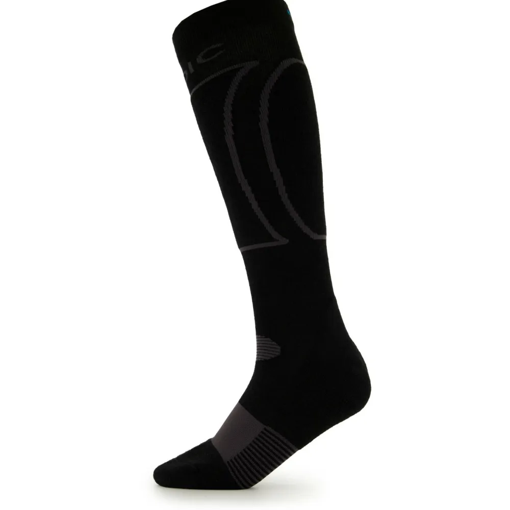 Mit den Merino Ski Socks Tech Heavy von Stoic bist Du für kalte Tage auf der Piste bestens ausgerüstet. Das Gewebe ist besonders dick und sorgt hierdurch für zusätzliche Wärme in den Skischuhen. In Kombination mit dem hohen Anteil an Merinowolle bleiben die Zehen warm. Zudem sorgt die Wolle dafür, dass keine unangenehmen Gerüche in den Skischuhen entstehen. Die Socken sind angenehm weich und an den Zehen sowie an den Fersen zusätzlich gepolstert.