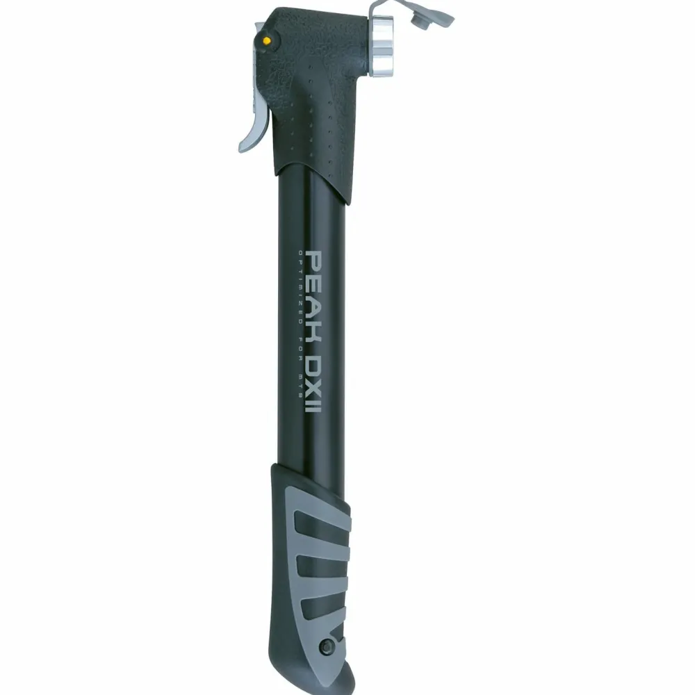 Ein beliebter Klassiker, das ist die Peak DX Minipumpe von Topeak. Mit dem klappbaren Bajonett T-Griff ist das Handling besonders einfach und komoftabel durch eine gute Kraftübertragung. Die Pumpe kommt mit Schutzklappe und Halter. Damit geht dir auch auf Tour nie die Puste aus.