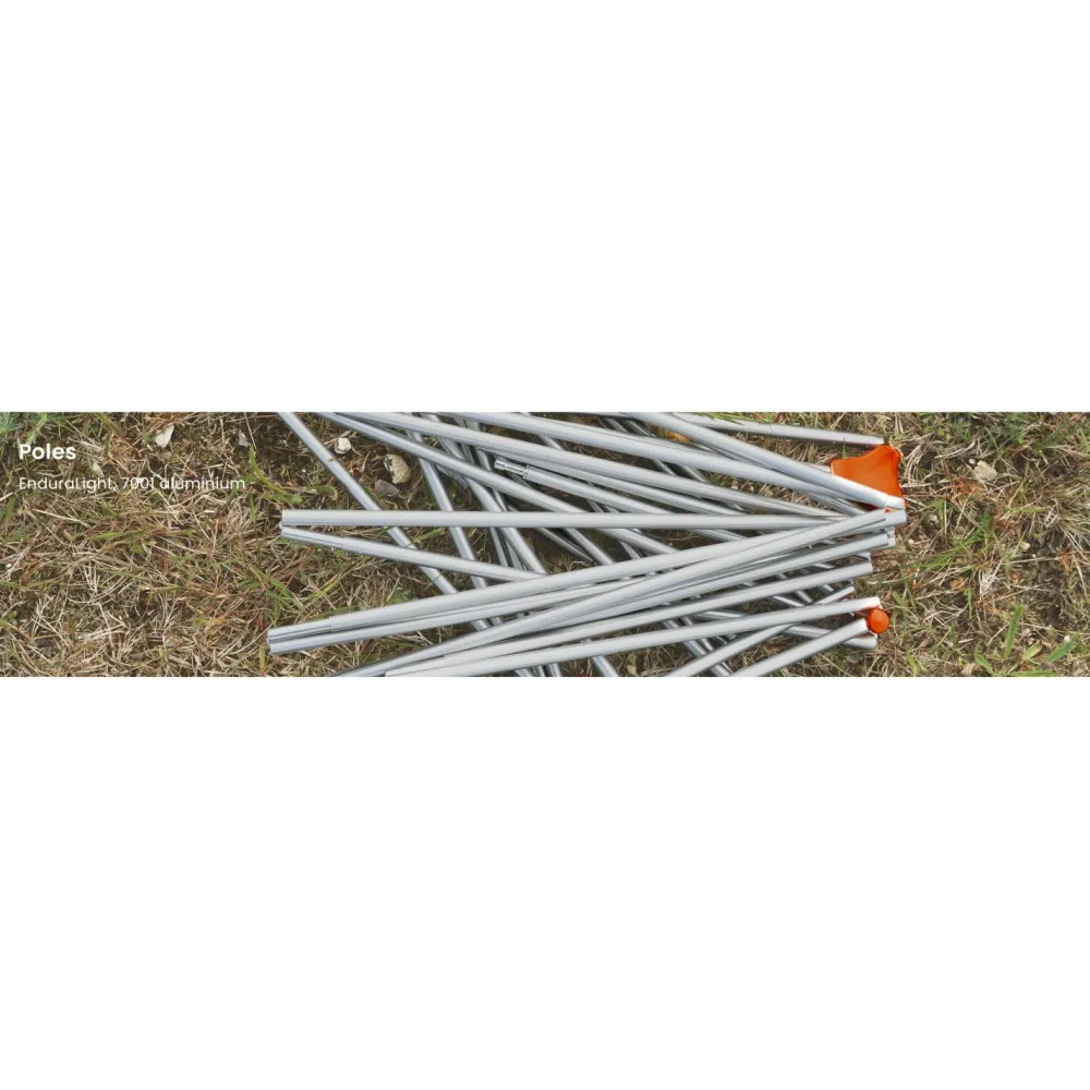Auch praktisch: im Inneren des Zeltes findest Du eine Wäscheleine sowie eine Lampenaufhängung vor, Organizer-Fächer gibt es auch. So ist stets für beste Übersicht, Ordnung und den nötigen Durchblick gesorgt. Für den Fall der Fälle ist auch ein kleines Reparatur-Kit beigelegt, sodass ein Schaden nicht zwingend das Ende der Tour bedeutet. Das außen liegende Aluminium-Gestänge wird einfach eingeklippt, wodurch lästiges Einfädeln entfällt.Deine Vorteile im Überblick:
