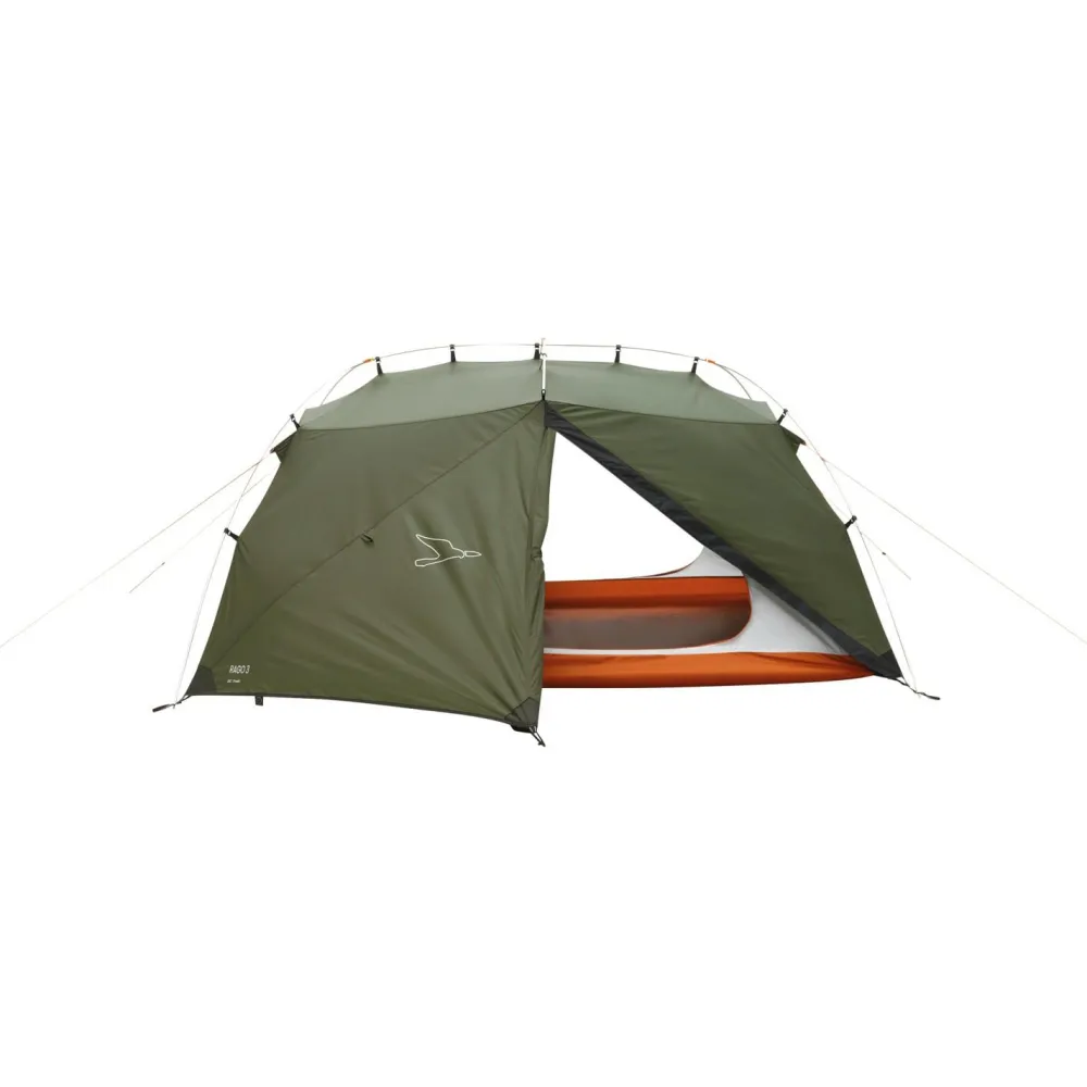 Ob Du gerne zu Fuß oder mit dem Rad unterwegs bist – das Rago 3 von Easy Camp ist gern dabei! Ein kompaktes Packmaß, dass auch geschickt an Fahrradrahmen verstaut werden kann, gehört ebenso dazu wie die entsprechende wasserdichte Packtasche. Das Zelt hat zwei Eingänge, sodass Du beim Hinein- und Hinausgehen flexibel bist; außerdem bedeutet das auch die Möglichkeit einer idealen Belüftung. Die Türen haben darüber hinaus elastische Schlaufen, mit denen ein kleines Vordach bauen kannst, indem Du sie z.B. am Fahrradlenker befestigst.