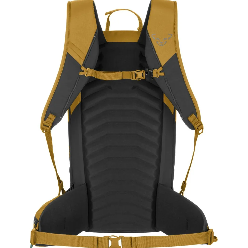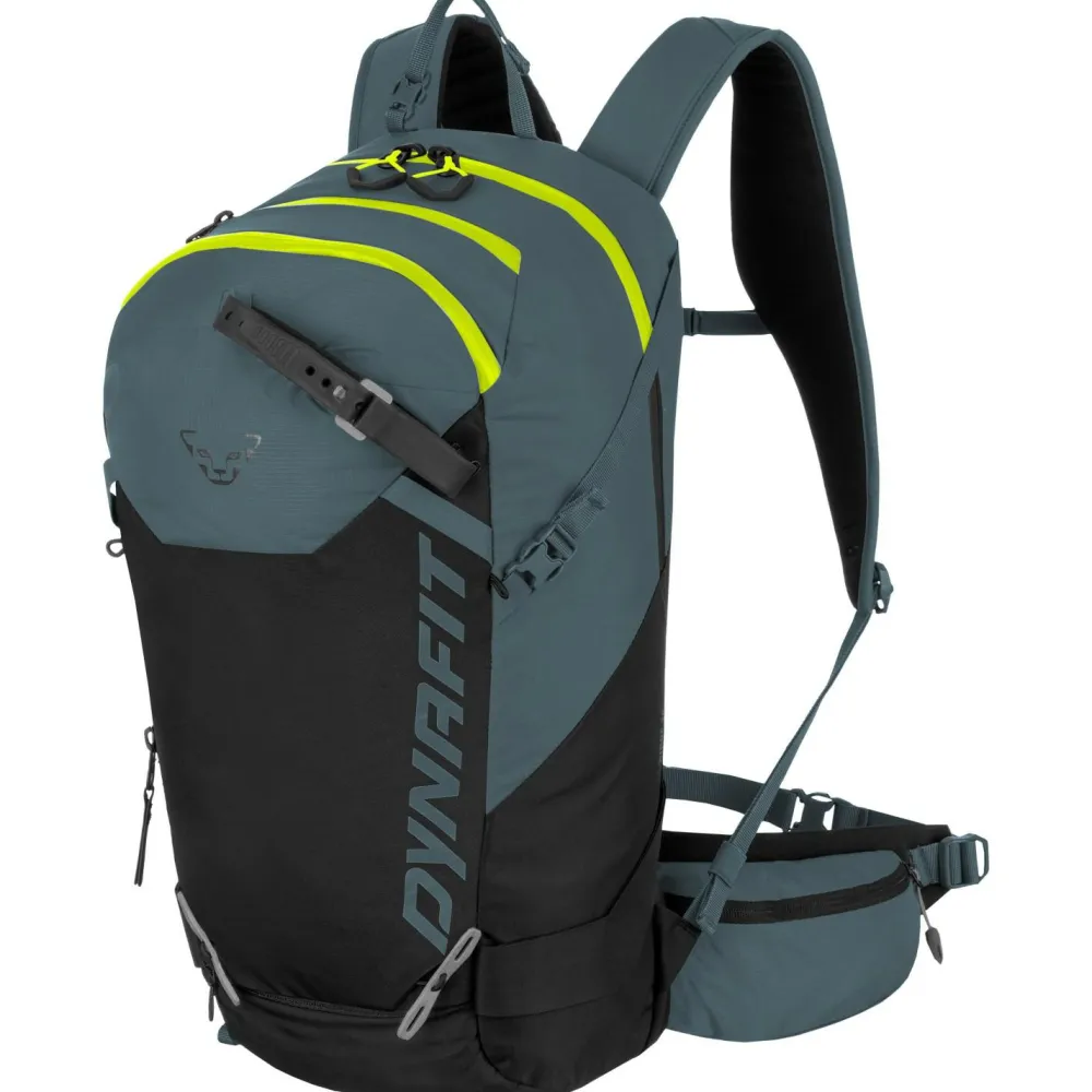 Der Ridge 26 Skitourenrucksack von Dynafit liegt mit seinen ergonomischen und gepolsterten Schulterträgern angenehm auf dem Rücken. Dieser tolle Tragekomfort bleibt auch bei langen Touren erhalten und Du kannst Dich voll und ganz auf den Sport konzentrieren. Im Innern bietet der Rucksack eine Menge Taschen und Aufbewahrungsfächer für alle Kleinigkeiten, die auf der Skitour nicht fehlen dürfen. So sind Sicherheits-Equipment und Brille mit eigenen Fächern sicher verstaut. Für Energieriegel, oder das Smartphone sind am Hüftgurt kleine Taschen angebracht, die zusätzlich mit einem Reißverschluss versehen sind.