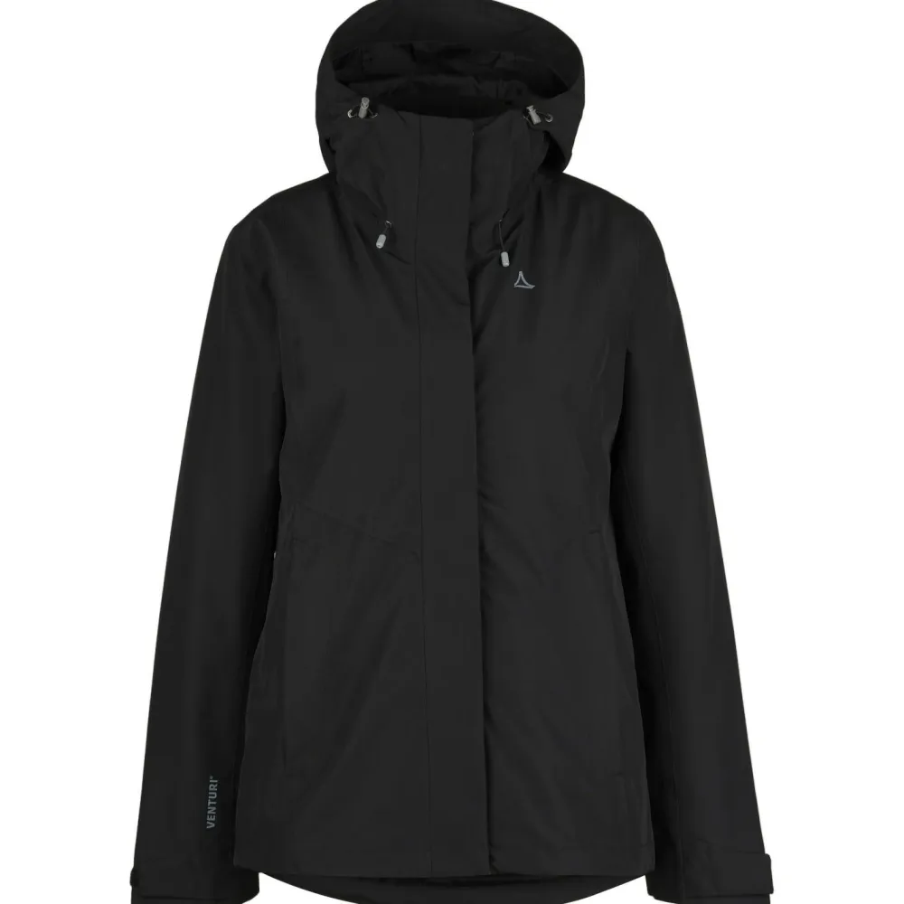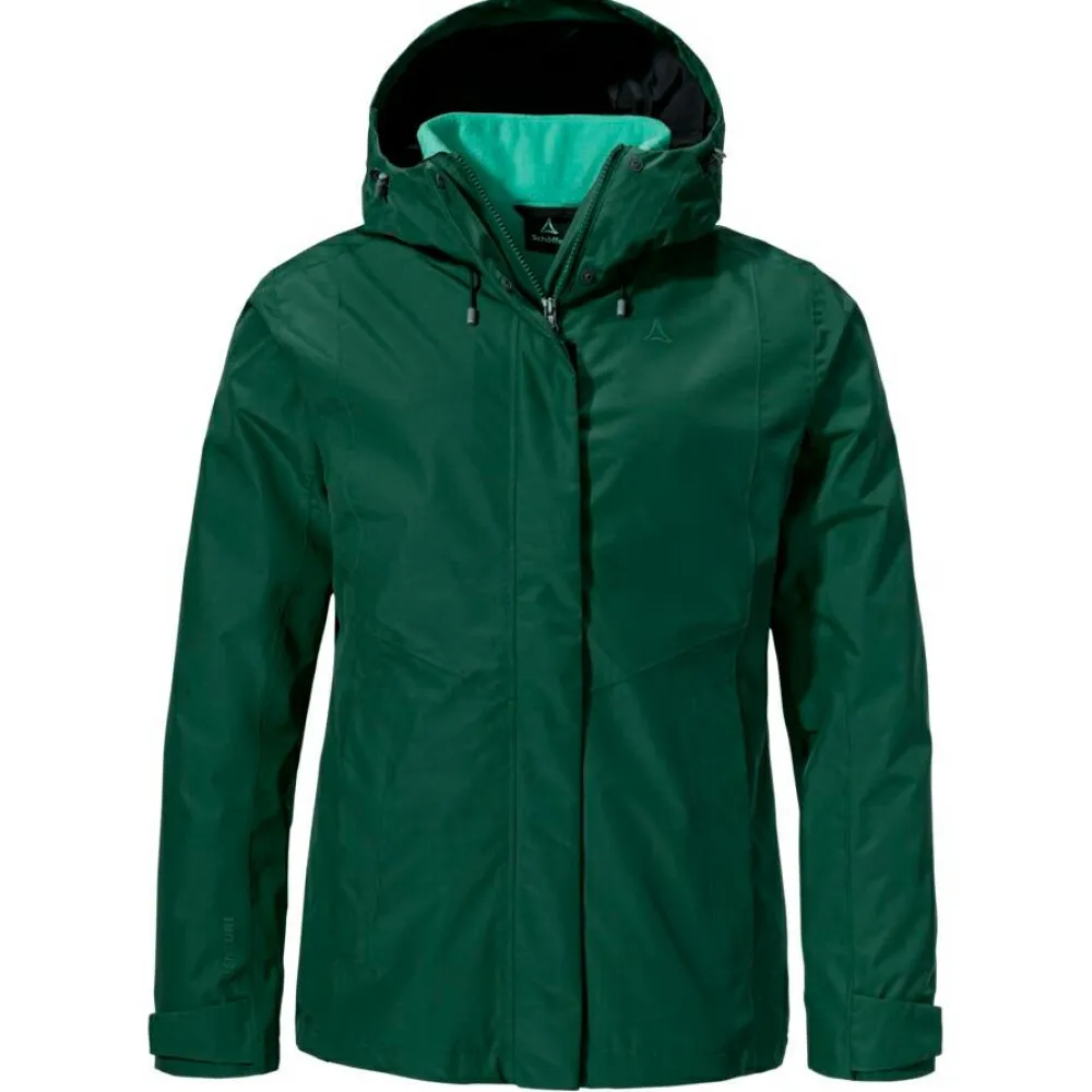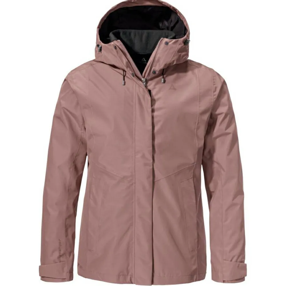 Mit der multifunktionalen Women’s 3In1 Jacket Okere von Schöffel kannst Du nichts verkehrt machen!Je nach Wetter und Aktivität kannst Du die Innenjacke aus flauschigem Fleece darunter ziehen oder weglassen. Dank dieser Flexibilität ist sie die perfekte Jacke für unsichere Wetterbedingungen. Die Hardshelljacke hat eine hohe Wassersäule von 10000 mm und ist sehr atmungsaktiv. Somit hält sie effektiv Wasser von außen ab, lässt aber Feuchtigkeit von innen nach außen. Du wirst also auch bei anstrengenden Wanderungen oder Fahrradtouren unter der Women’s 3In1 Jacket Okere nicht ins Schwitzen kommen und es wird sich kein unangenehmer Hitzestau bilden.Die Reißverschlüsse sind zusätzlich mit einer Windabdeckleiste ausgestattet, damit auch dort kein Wind eindringen kann.