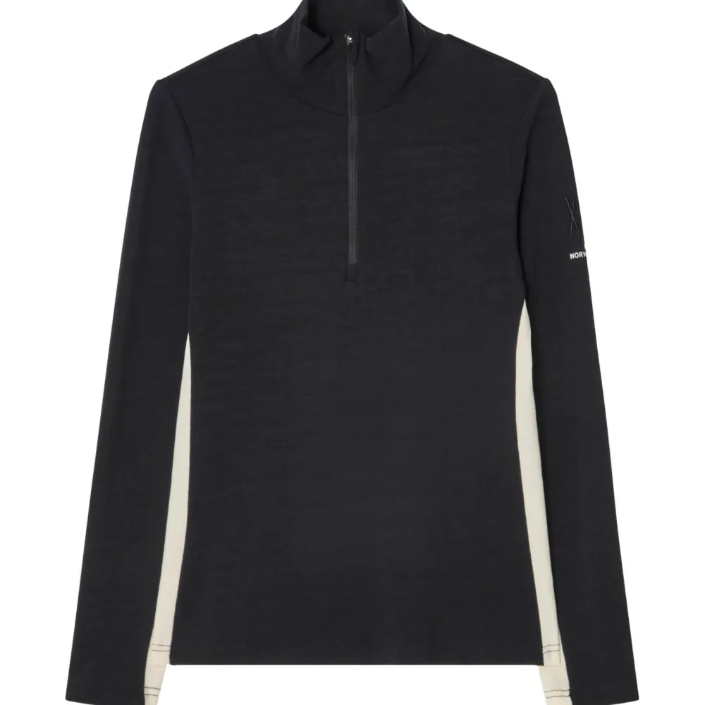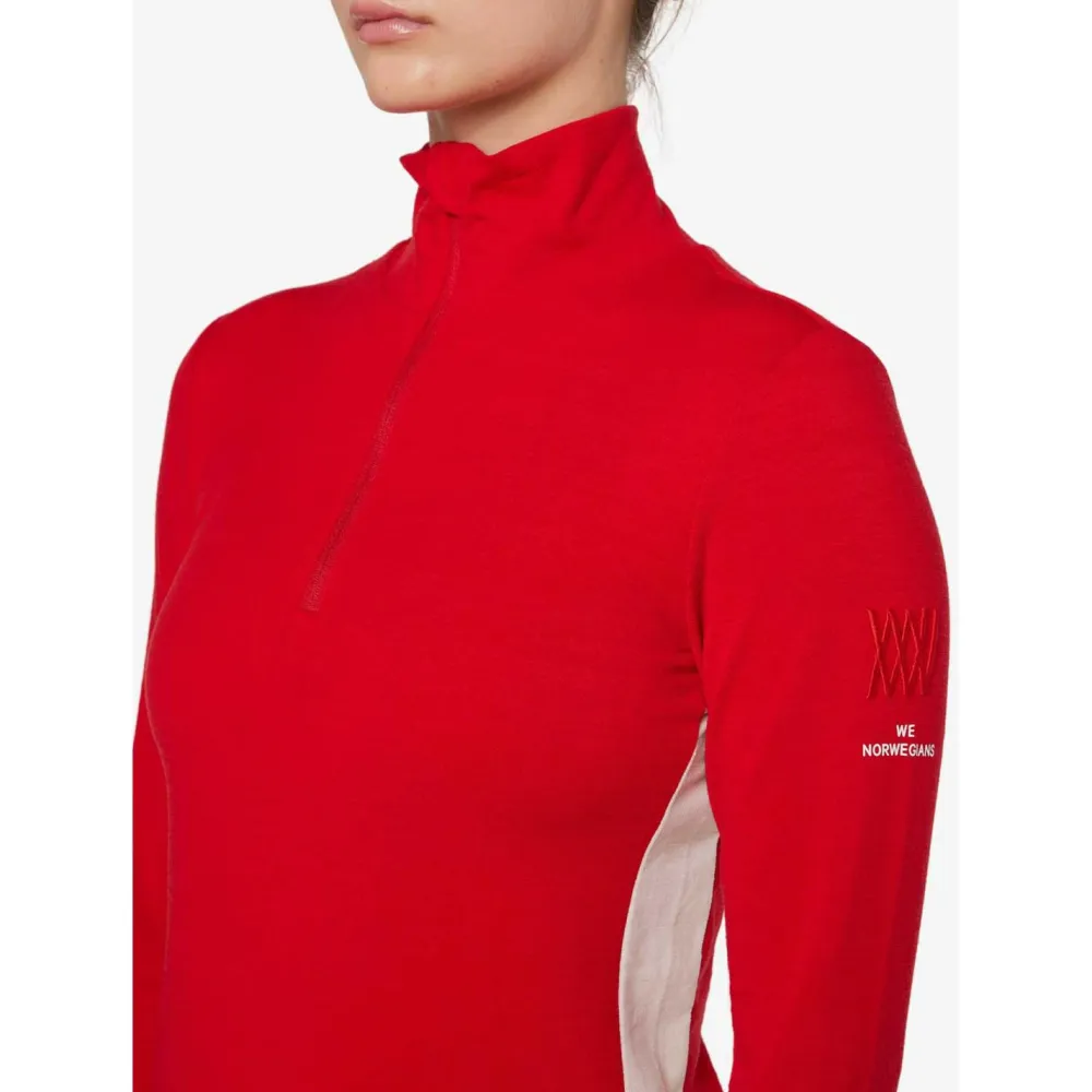 Sportlich, ergonomisch und im idealen Mikroklima geht es auf die Piste oder die Winterwanderung mit dem Women’s Voss 1/4-Zip Merinopullover von We Norwegians!Der enganliegende Pullover aus mulesingfreier Merinowolle kommt mit einem geringen Elasthananteil der für die optimale Passform und Bewegungsfreiheit sorgt. Die geruchshemmenden Wollfasern wirken antibakteriell und sorgen für langanhaltende Frische. Die temperaturregulierenden Eigenschaften der Fasern bringen ein angenehmes Trageklima am Körper. Der hohe Stehkragen wärmt die empfindliche Hals- und Nackenregion und der Reißverschluss sorgt bei Bedarf für Frischluftzufuhr.