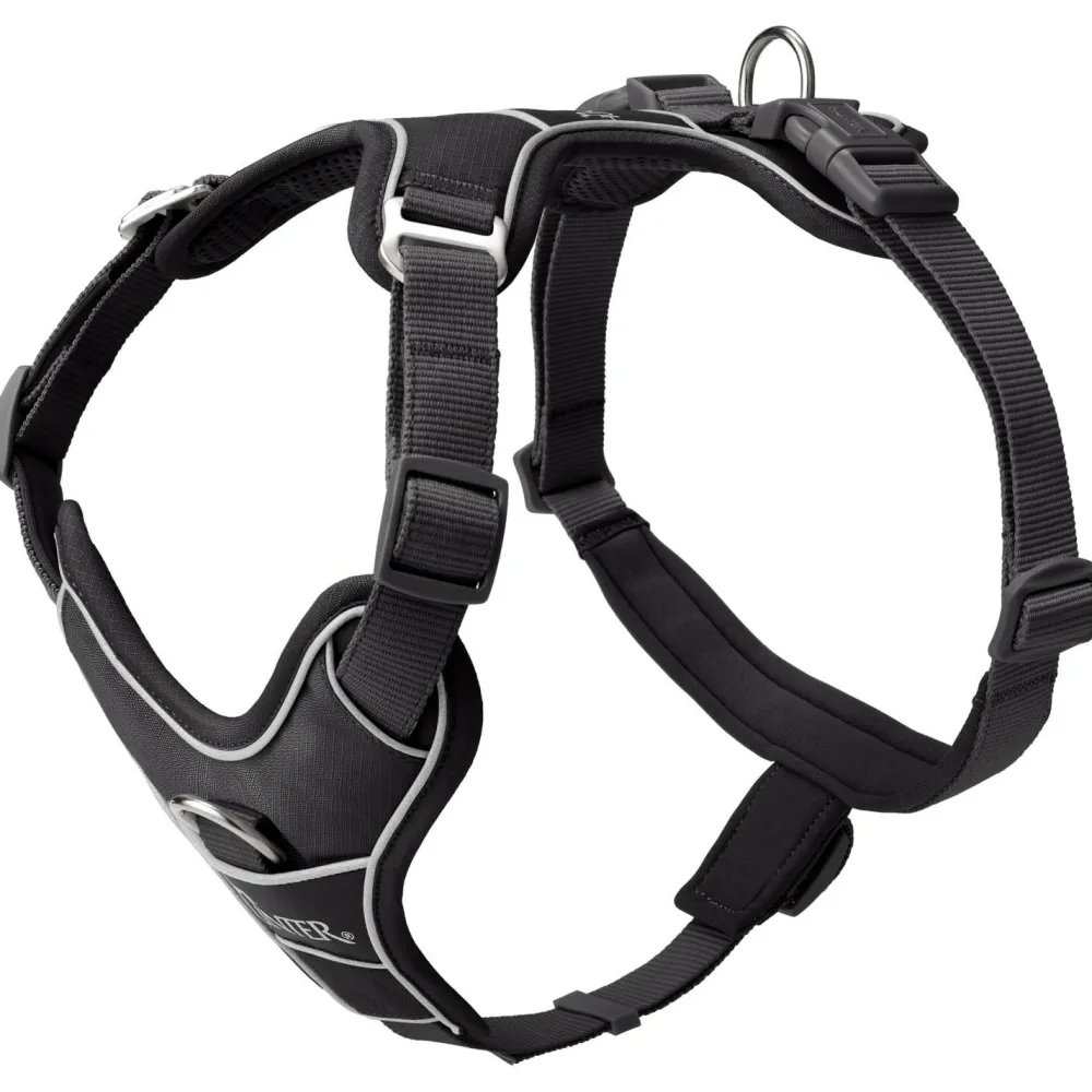 Das Hundegeschirr ist komfortabel gepolstert und lässt sich dank zahlreicher Verstellmöglichkeiten genau an den Hund anpassen. Für kopfscheue Hunde bietet es eine Einstiegsmöglichkeit vorne und dank des stark reflektierenden Materials ist für Sicherheit im Dunkeln gesorgt.