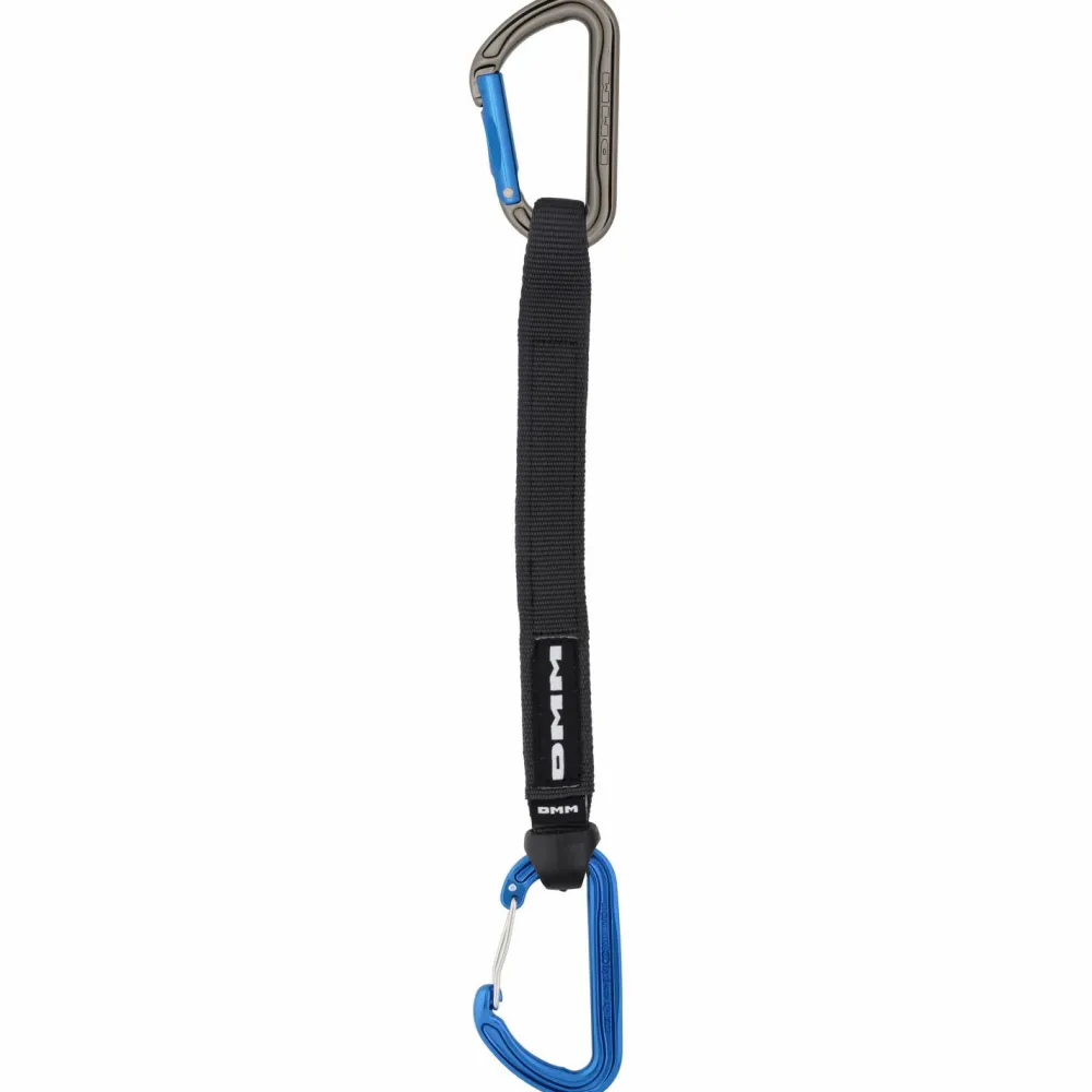 Für den Einsatz am Fels wurde das Shadow/Spectre Hybrid Quickdraw von DMM entworfen. Dieses Express-Set bringt alles mit, worüber man sich in der Wand freut. Ein gutes Handling sowie eine hohe Sicherheit stehen an oberster Stelle. Besonders ist dabei die Konstruktion des Express-Sets. Der obere Karabiner kommt mit einem klassischen Schnapper und kann aufgrund der Keylocknase leicht in die Haken eingehängt werden. Der untere Karabiner hingegen wurde mit einem Drahtschnapper ausgestattet und ist so nicht nur besonders leicht, sondern auch sicher.