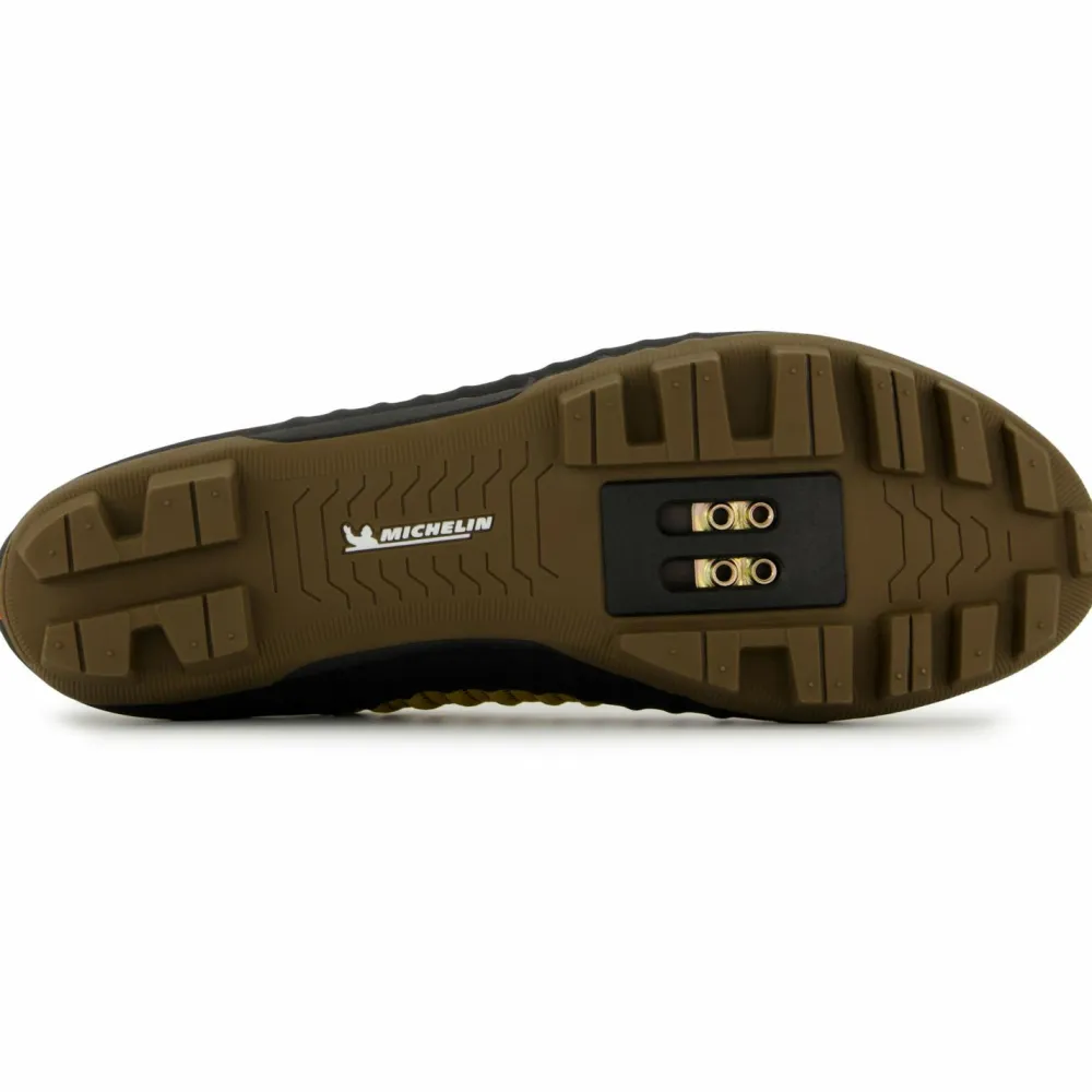 Die verwendete Michelin-Sohle besitzt unterschiedliche Steifigkeitsbereiche, dank denen Du auch zu Fuß effizient unterwegs bist. Sei es bei Tragepassagen oder beim Einkaufen im Supermarkt. So ist sie vorn und hinten eher weich und in der Mitte wie ein klassischer MTB Schuh ausgeprägt.