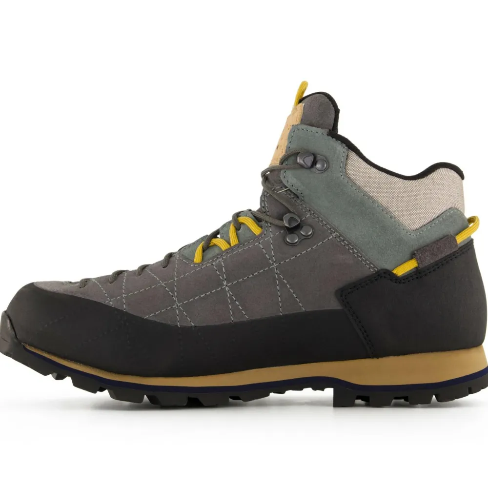 Durch das Obermaterial aus strapazierfähigem Leder, sowie dem Gummi-Randstreifen, sind die Füße optimal vor Geröll und Unebenheiten geschützt. Die tiefe Schnürung sowie der hohe Schaft stabilisieren die Knöchel und sorgen für einen sicheren Halt, was durch die gut profilierte Vibramsohle verstärkt wird.