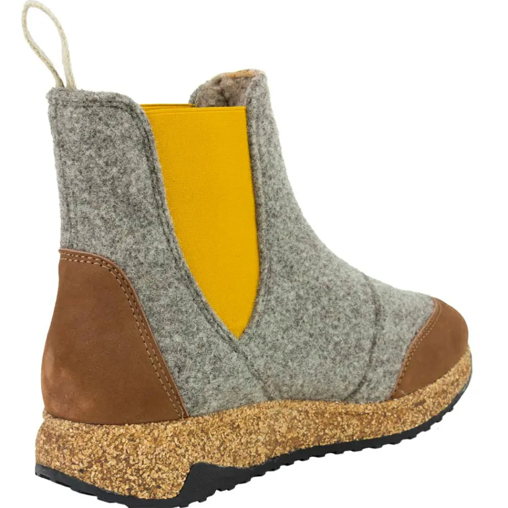 Der in Portugal hergestellte Women’s Arctic Traveller Wool von Doghammer ist ein wirklich stylischer Damen-Winterschuh mit einem spannenden Materialmix, verpackt in der Gestalt eines Chelsea Boots! Perfekt für den winterlichen Alltag, und vielfältig mit anderen Kleidungsstücken kombinierbar. Durch die elastischen Einsätze an den Seiten sind diese Schuhe sehr einfach an- und auszuziehen, und die herausnehmbare und anatomisch geformte Einlegesohle aus recyceltem Kork federt jeden Deiner Schritte zuverlässig ab.
