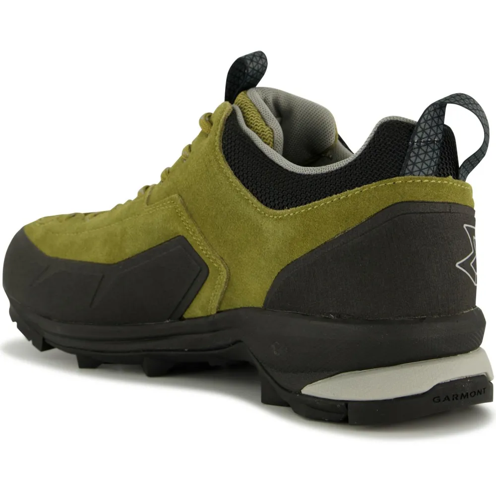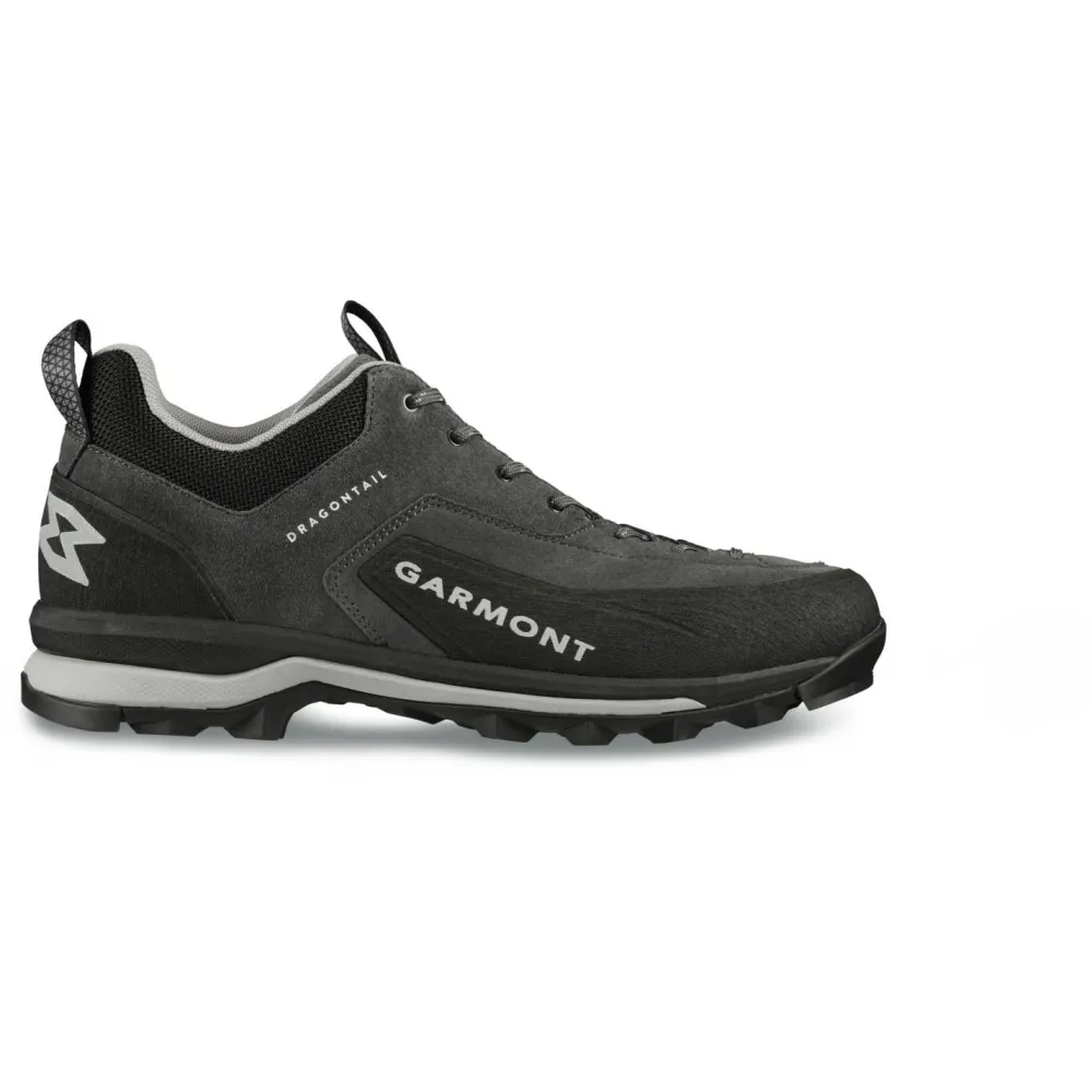 Der feste Schnitt sorgt für einen guten Halt des Schuhs, lässt dem Vorderfuß allerdings angenehm viel Platz. Zum Schutz der Fußgelenke fängt die EVA Mittelsohle mit ihrer dämpfenden Eigenschaft Stöße ab. Die GARMONT Außensohle schenkt mit ihrem griffigen Profil ausreichend Halt im Gelände. Zudem ist sie mit einer Kletterzone an der Fußspitze ausgestattet, so können mit dem Dragontail von Garmont Kletterstellen problemlos gemeistert werden.