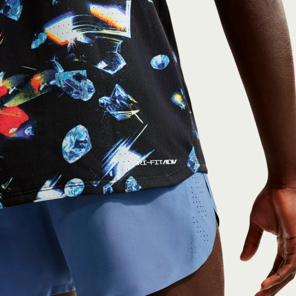 Das Dri-Fit ADV Aeroswift AOP S/S von Nike ist für Tempo gemacht und von der legendären Diamant-Trophäe inspiriert. Es ist atmungsaktiv und schnelltrocknend. Das leichte Material fühlt sich kaum spürbar an und sorgt mit gezielter Atmungsaktivität dafür, dass Du auch bei Höchstgeschwindigkeit angenehm kühl bleibst. Mit dem Laufshirt kannst Du Dich voll auf Deinen Lauf, Deinen Rhythmus und Deine Ziellinie konzentrieren.