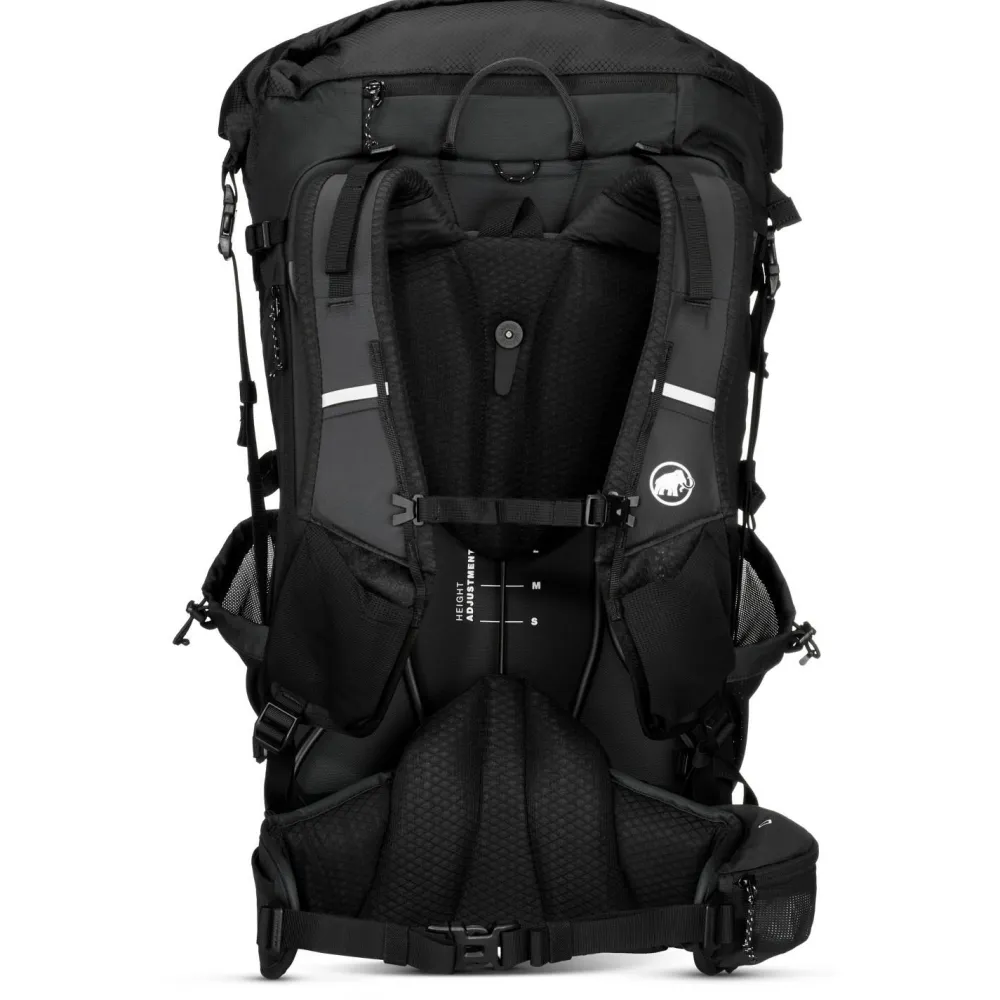 Mit 50 Liter Volumen, die sich auf bis zu 60 Liter erweitern lassen, bietet der Ducan Spine 50-60 Wanderrucksack von Mammut eine Menge Stauraum für mehrtägige Touren und Wanderungen. Dabei begeistert der Tourenrucksack durch sein ergonomisch optimiertes Tragesystem mit Active Spine 3.0 Technology. Es passt sich perfekt den Bewegungen der Wirbelsäule an und sorgt mit Netzrücken und Metallrahmen für die nötige Mischung aus Ventilation und Kraftübertragung. Der große Rucksack wird per Rolltop mit Reißverschluss verschlossen und verfügt zusätzlich über eine großzügige Reißverschlussöffnung zum Hauptfach. Eine abnehmbare Regenhülle, seitliche Taschen und Halterungen für Trekkingstöcke ergänzen den komfortablen Wanderrucksack für ausgedehnte Touren.