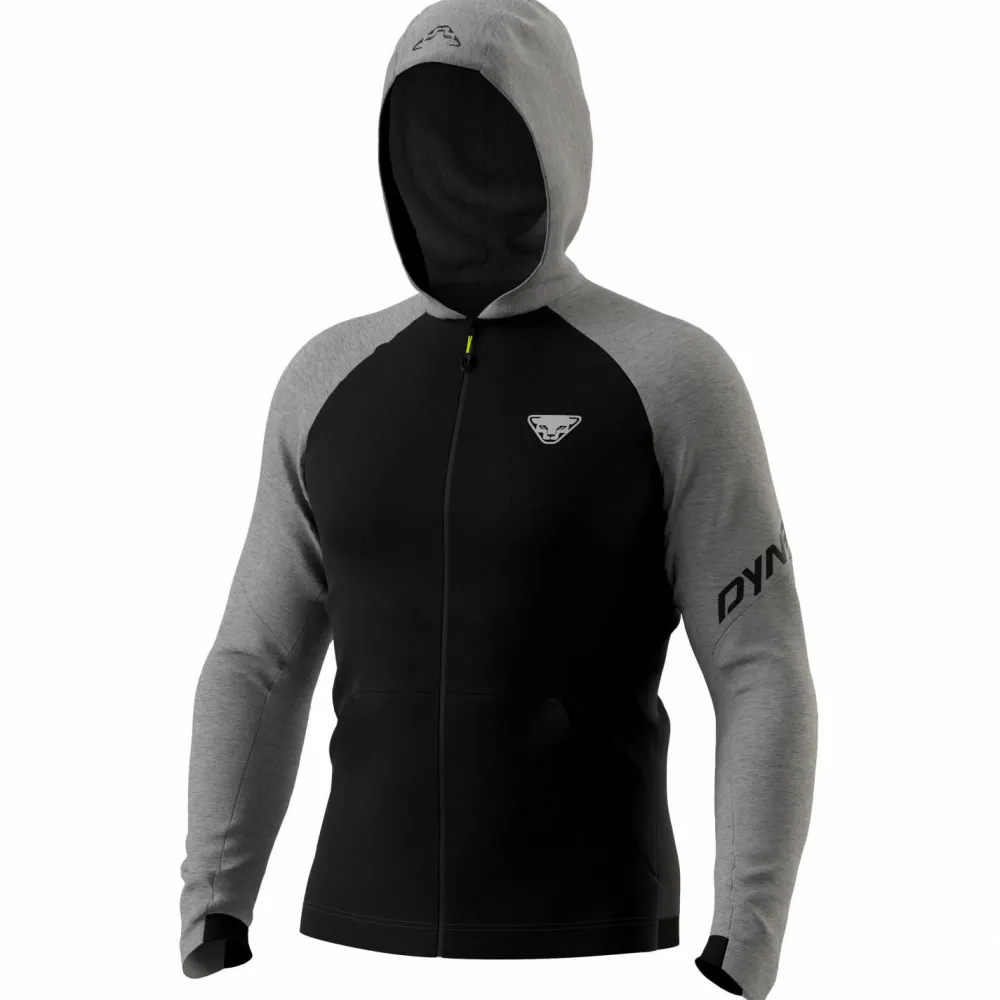 Das sehr weiche Fleece liegt angenehm weich auf der Haut und ist an Komfort kaum zu toppen. Die Kapuze schützt den Kopf vor Kälte und Wind. Zwei Eingriffstaschen lassen Kleinigkeiten, die man gerne bei sich trägt, verstauen. Ein kleines Dynafit-Logo auf der Brust, der Schriftzug am Ärmel und die Farbkombinationen verleihen der Kapuzenjacke einen sportlichen und coolen Look.