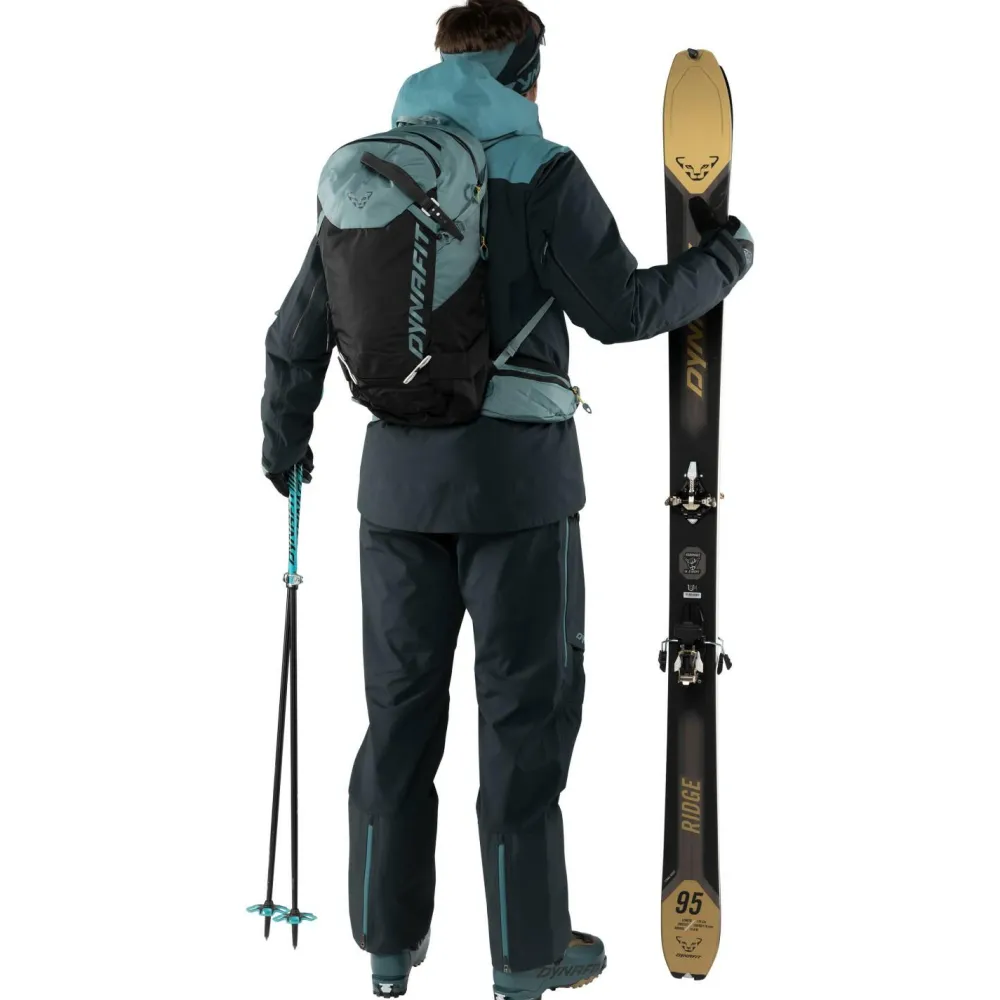 Die Ridge GTX Jacket besteht aus recycelten Fasern und setzt damit ein klares Zeichen in Sachen Nachhaltigkeit. Kleinigkeiten, die unterwegs nicht fehlen dürfen und schnell griffbereit sein sollen, lassen sich in den geräumigen Taschen der Jacke sicher verstauen. Sie sind mit robusten und wasserdichten Reißverschlüssen ausgestattet. Um einen unangenehmen Hitzestau zu verhindern, hat Dynafit die Hardshelljacke mit Belüftungs-Reißverschlüssen ausgestattet, die manuell für Luftzug sorgen können.
