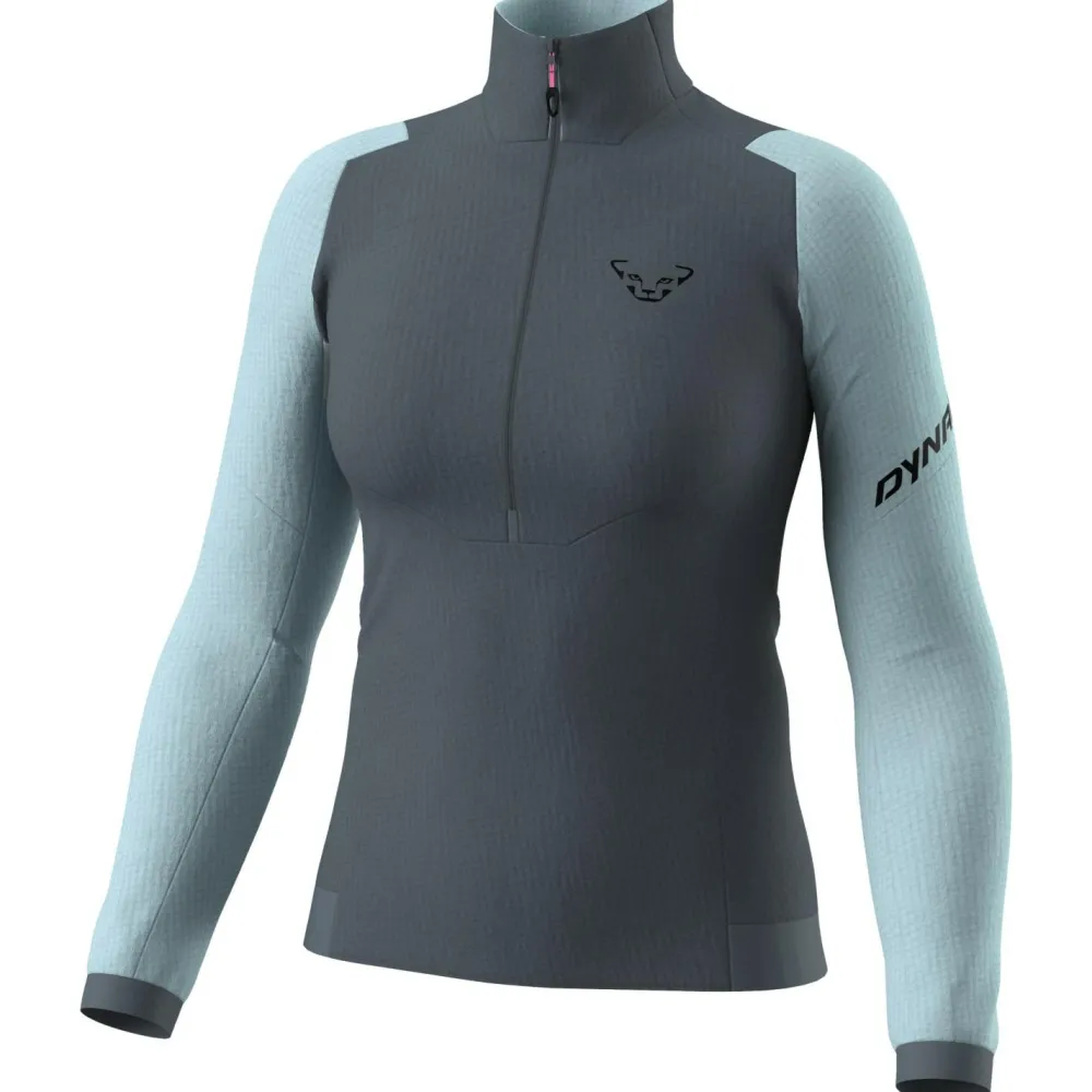 Der Women’s Blacklight Thermal 1/2 Zip Fleecepullover von Dynafit liegt mit seinen weichen Materialien angenehm am Körper an und das, auch wenn schweißtreibende Bedingungen warten. Feuchtigkeit kann dank seiner schnelltrocknenden Eigenschaften direkt verdunsten und elastische Fasern sorgen für uneingeschränkte Bewegungsfreiheit beim Sport.