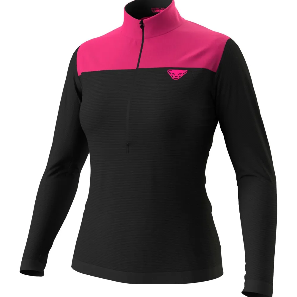 Das Women’s Elevation L/S von Dynafit ist ein thermoregulierendes Damen-Langarmshirt mit halblangem Reißverschluss, das sich ideal für den Bergsport eignet. Es besteht aus einem hochfunktionellen Materialmix aus Merinowolle und Kunstfasern, der eine hervorragende Atmungsaktivität und hohen Tragekomfort garantiert. Der hohe Wollanteil wirkt zudem der Entstehung unangenehmer Gerüche entgegen. Das Gewebe bietet dank 4-Wege-Stretch viel Bewegungsfreiheit.