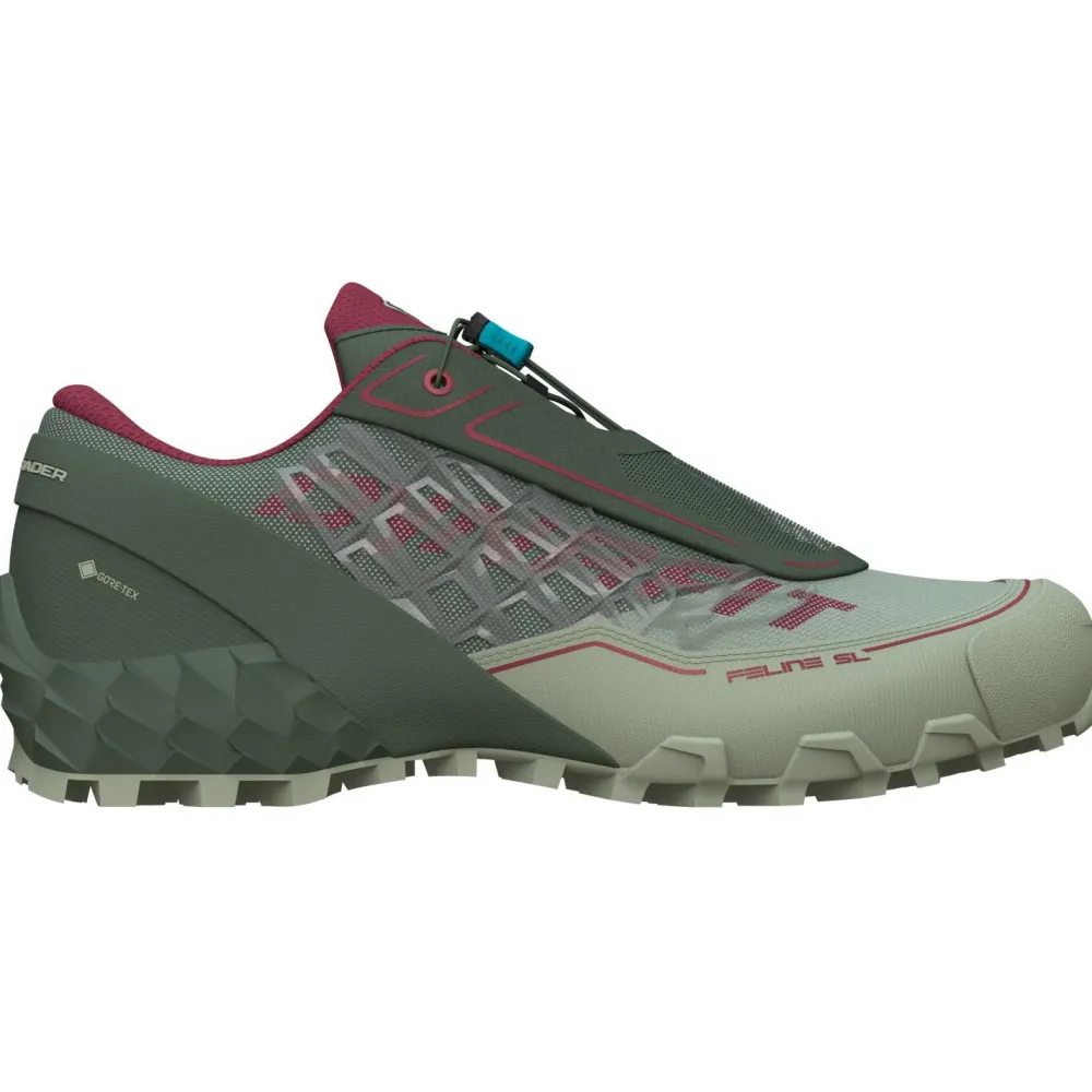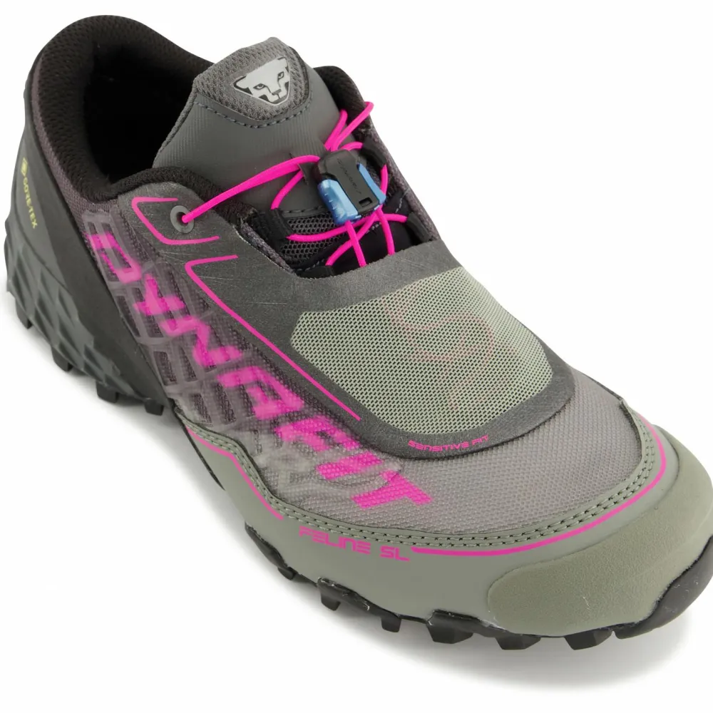 Der Women’s Feline SL GTX von Dynafit ist ein knöchelhoher Schuh zum Trailrunning für mittellange Distanzen.