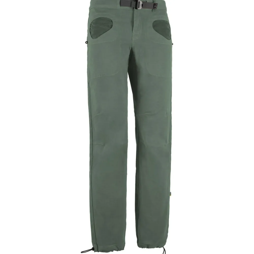 Die Rondo Belt-Boulderhose von E9 ist Deine zuverlässige Begleiterin am Fels und in der Halle. Mit ihrem elastischen Materialmix aus Bio-Baumwolle und 3% Elasthan bietet sie Dir genau den Stretch, den Du beim Bouldern brauchst. Der integrierte Gürtel sorgt für eine passgenaue Einstellung am Bund, während die verstellbaren Beinabschlüsse Dir zusätzliche Flexibilität geben – trage die Hose ganz so, wie Du magst.