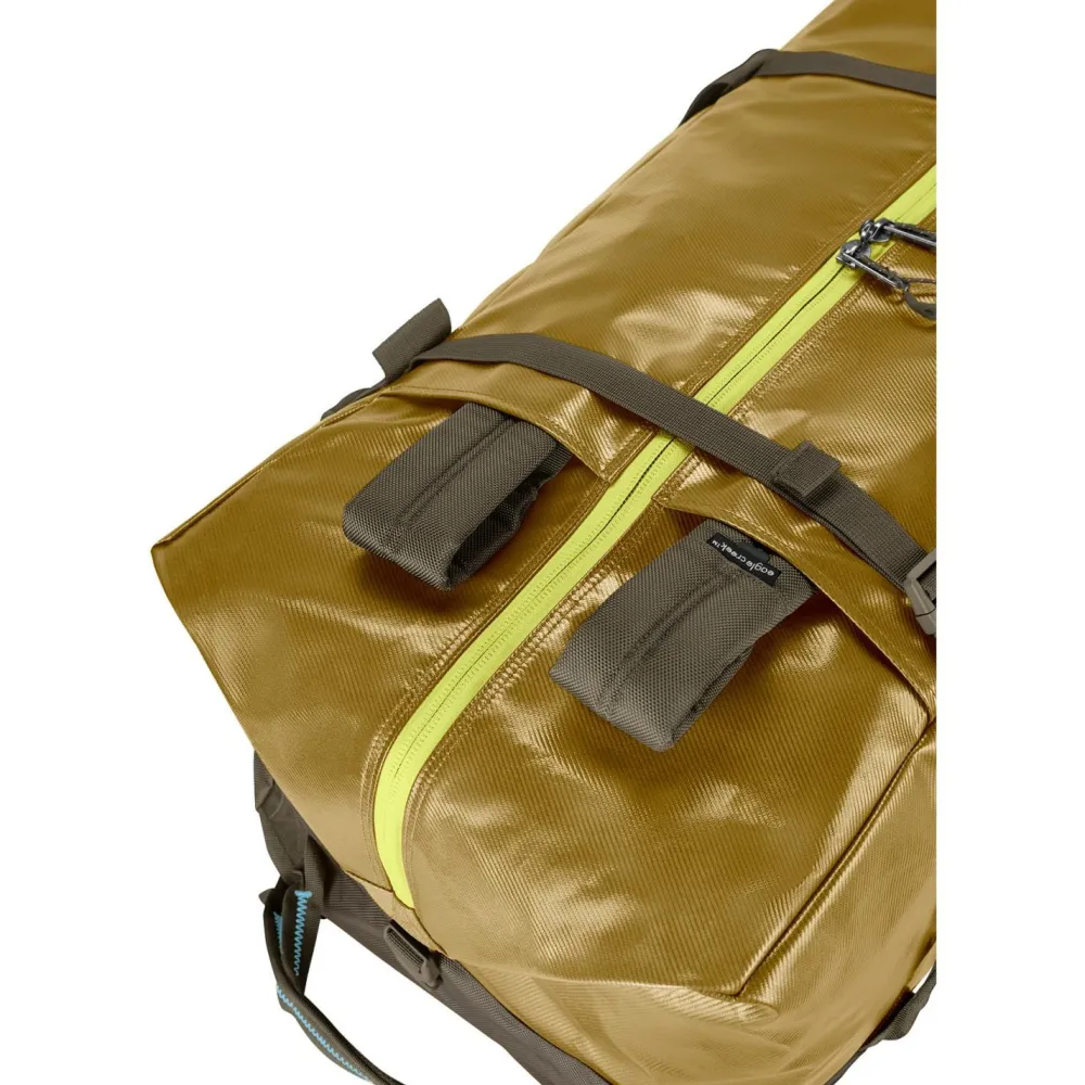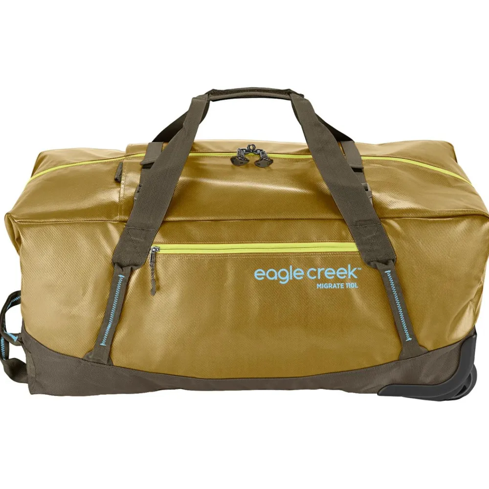 Die Migrate Wheeled Duffel 110 L von eagle creek, ist eine umweltfreundliche, robuste und gut durchdachte Reisetasche. Sie ist aus 100 % recyceltem Material hergestellt. Das Hauptfach ist durch einen großen Reisverschluss zugänglich. Die zusätzliche Fronttasche, ermöglicht Dir einen schnellen Zugriff auf das Wichtigste. Die Rucksackgurte lassen sich einfach und schnell verstauen. Die unterschiedlichen Tragegriffe, dienen gleichzeitig zur Befestigung für zusätzliches Gepäck. Bei dieser Tasche hast Du eine lebenslange Garantie.