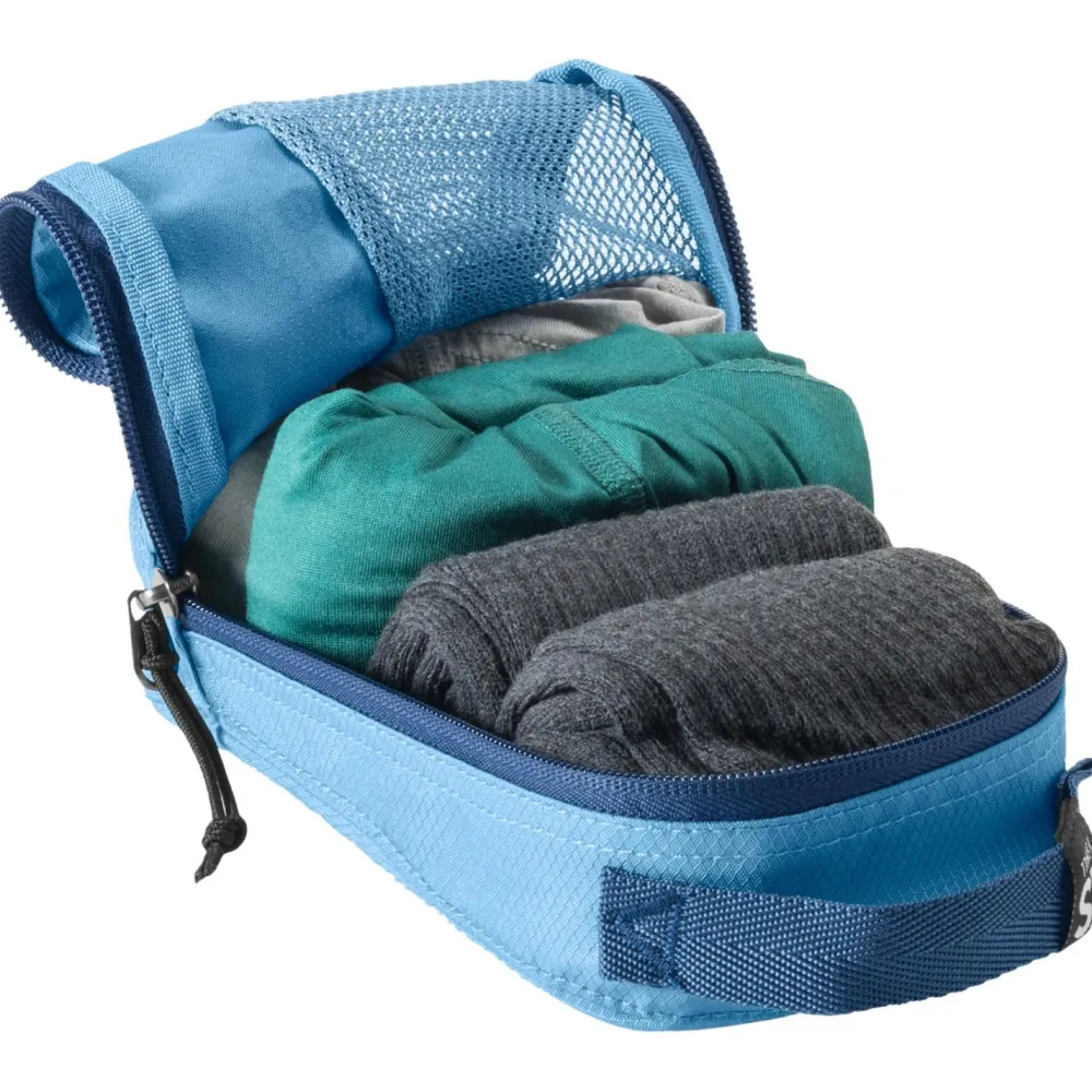 Der Pack-It Reveal Cube XS Packsack von Eagle Creek ist ein echtes Platzwunder. Das innovative Reißverschluss-Design ermöglicht verschiedene Packstile: Du kannst Deine Kleidung falten und im Cube stapeln oder zusammenrollen und hineinschieben. Dank des schräg nach hinten verlaufendenReißverschlusses behält alles seine Form. Um das Handling des Packsacks zu erleichtern, ist er mit einem robusten Tragegriff ausgestattet. Diese Größe eignet sich perfekt um Kleinigkeiten, wie Unterwäsche, Socken oder Accessoires zu verstauen.