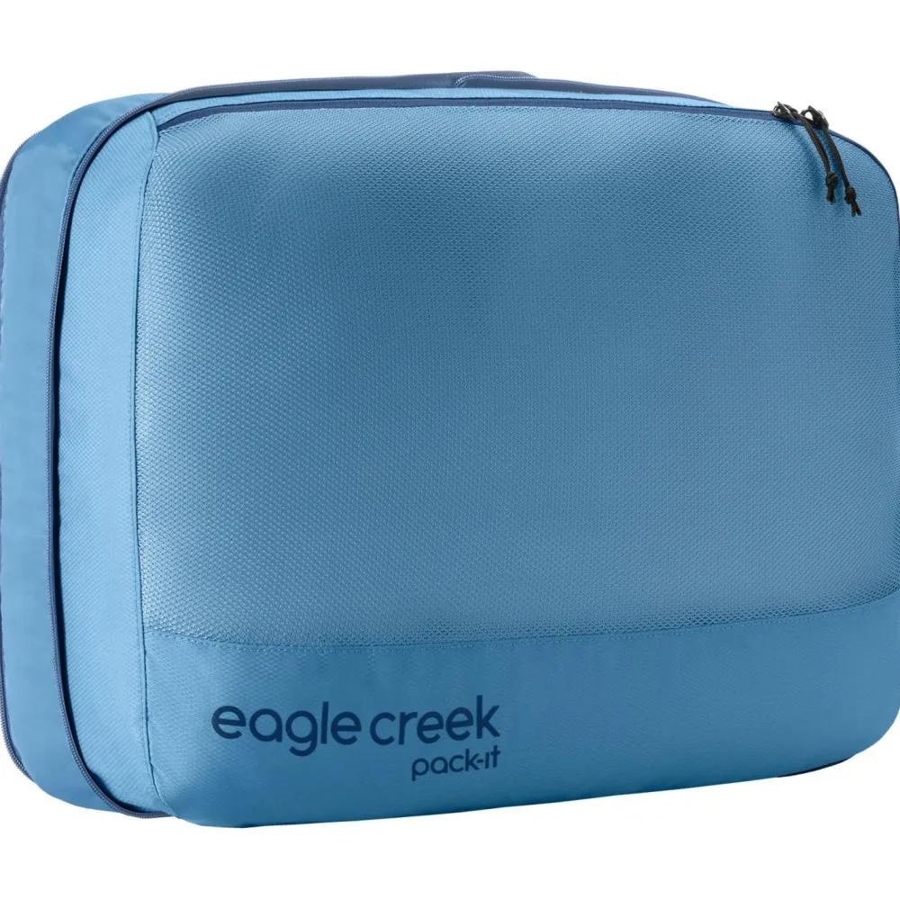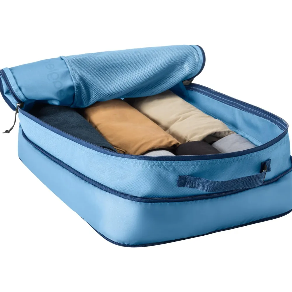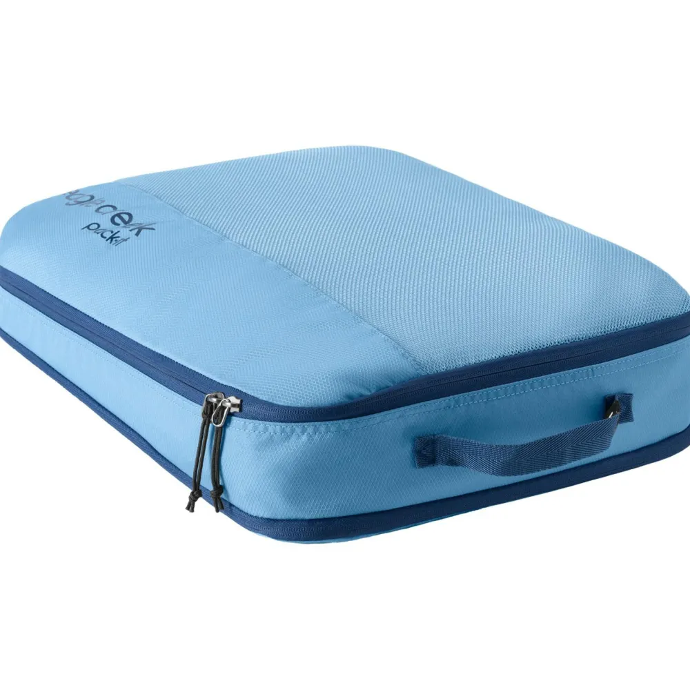 Der Pack-It Reveal Expansion Cube L Packsack von Eagle Creek kommt mit robusten und nachhaltigen Materialien daher. Diese schrecken vor unsanften Berührungen auf Reisen nicht zurück und bestehen aus recycelten Fasern. Für ein einfaches und angenehmes Handling ist der Packsack mit einem Tragegriff ausgestattet. Der Erweiterungs-Reißverschluss bietet die Möglichkeit, das Volumen bei Bedarf zu vergrößern. Pullover, Jacken und andere Gegenstände freuen sich schon auf eine ordentlich sortierte Reise.