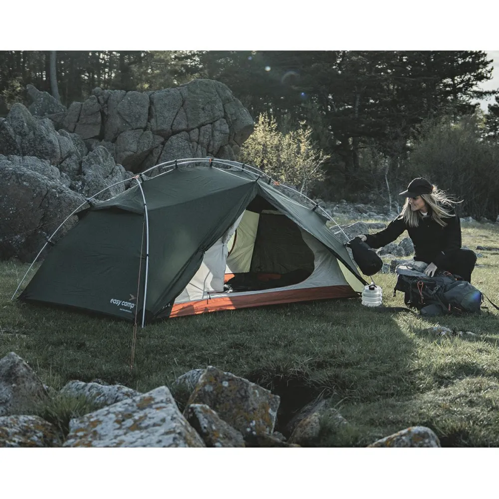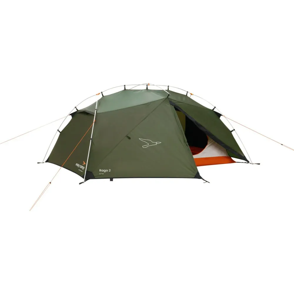 Ob Du gerne zu Fuß oder mit dem Rad unterwegs bist – das Rago 2 von Easy Camp ist gern dabei! Ein kompaktes Packmaß, dass auch geschickt an Fahrradrahmen verstaut werden kann, gehört ebenso dazu wie die entsprechende wasserdichte Packtasche. Das Zelt hat zwei Eingänge, sodass Du beim Hinein- und Hinausgehen flexibel bist; außerdem bedeutet das auch die Möglichkeit einer idealen Belüftung. Die Türen haben darüber hinaus elastische Schlaufen, mit denen ein kleines Vordach bauen kannst, indem Du sie z.B. am Fahrradlenker befestigst.