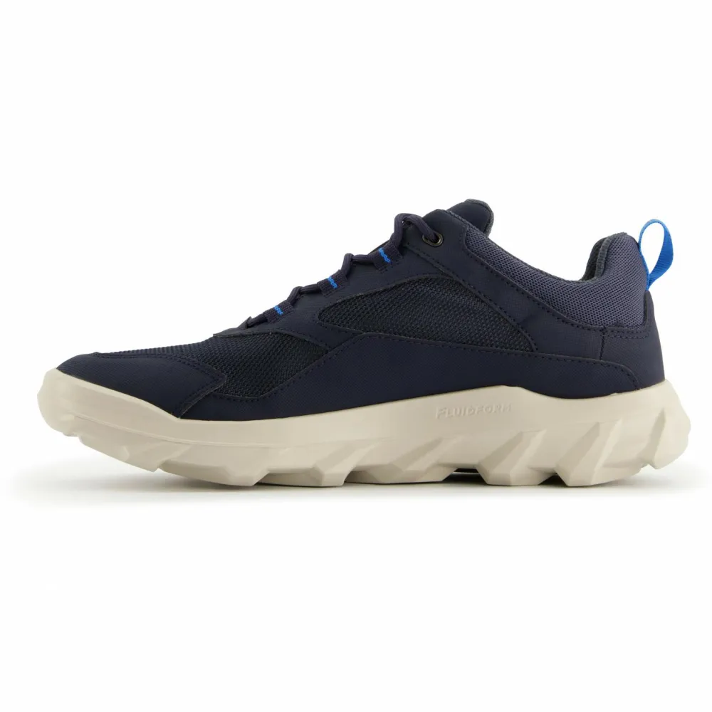 Diese stylischen Multisportschuhe können dank des klassischen Designs im Alltag ebenso gut getragen werden wie beim Outdoorsport in der Freizeit – die MX Low GTX von Ecco.Im Obermaterial ist eine Membran von GORE-TEX integriert, die für atmungsaktive und wasserdichte Schuhe sorgt. An der Sohle kommt ein tiefes Profil zum Einsatz, um auch bei nassen Bedingungen für optimalen Grip zu sorgen. Eccos Fluidform Technologie sorgt für eine präzise Passform und bietet durch die weiche Zwischensohle eine bequeme Dämpfung beim Wandern.Anziehschlaufen und reflektiere Details machen die Ecco MX Low GTX Multisportschuhe zur ersten Wahl für den täglichen Einsatz.