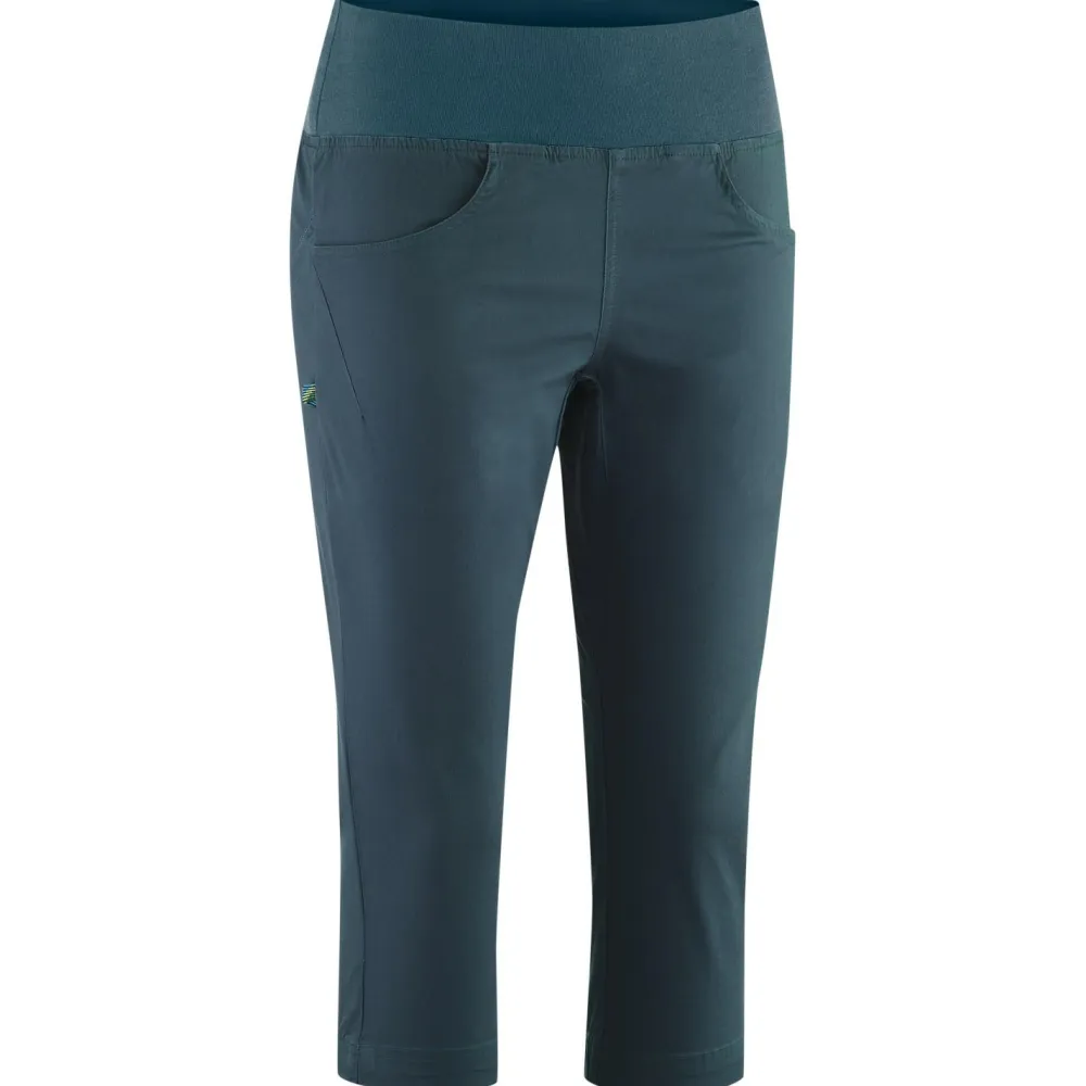 Die Women’s Sansara Pants III Kletterhose von Edelrid ist mit einem besonders breiten Hüftbund ausgestattet. Außerdem ergänzen zwei Fronttaschen und eine extra Gesäßtasche die Hose.