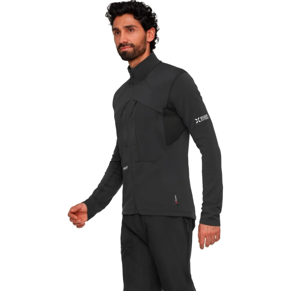 Die Eiger Nordwand Advanced Midlayer Jacket Fleecejacke von Mammut vereint Isolationsleistung und Funktionalität gekonnt. So eignet sie sich für anspruchsvolle Einsätze in den Bergen, bei denen Du Dich auf Deine Bekleidung verlassen musst. Unter den Armen und im Rückenbereich, wo tendenziell am meisten Schweiß entsteht, sind hochwertige Mesh-Einsätze integriert, die eine angenehme Luftzirkulation gewährleisten. Geruchshemmende Eigenschaften der Fasern ermöglichen zudem das Tragen der Jacke über mehrere Tage, wenn Du länger unterwegs sein solltest.