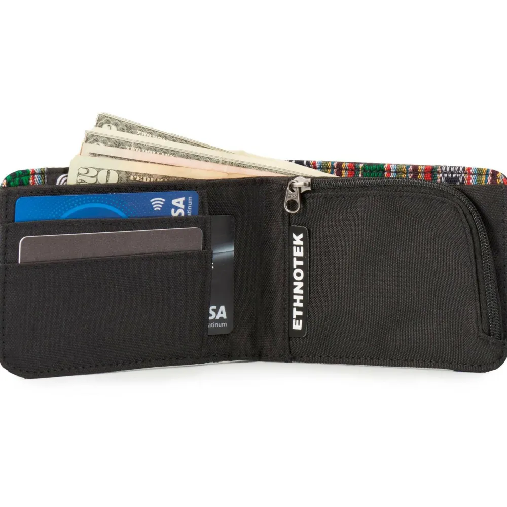 Mit dem Ketat Wallet von Ethnotek hast Du Deine wichtigsten Karten, Bargeld und Münzen immer griffbereit – ganz gleich, ob im Alltag oder auf Reisen. Das durchdachte Innenleben mit Organizer-Fach, drei separaten Kartenfächern, einem Reißverschlussfach für Münzen sowie einem eigenen Bereich für Scheine und Quittungen sorgt dafür, dass alles seinen Platz hat und schnell gefunden ist. Besonders beruhigend: Der integrierte RFID-Schutz verhindert zuverlässig das Auslesen Deiner sensiblen Kartendaten durch Dritte. So kannst Du Dich entspannt auf das Wesentliche konzentrieren – Deine Abenteuer.