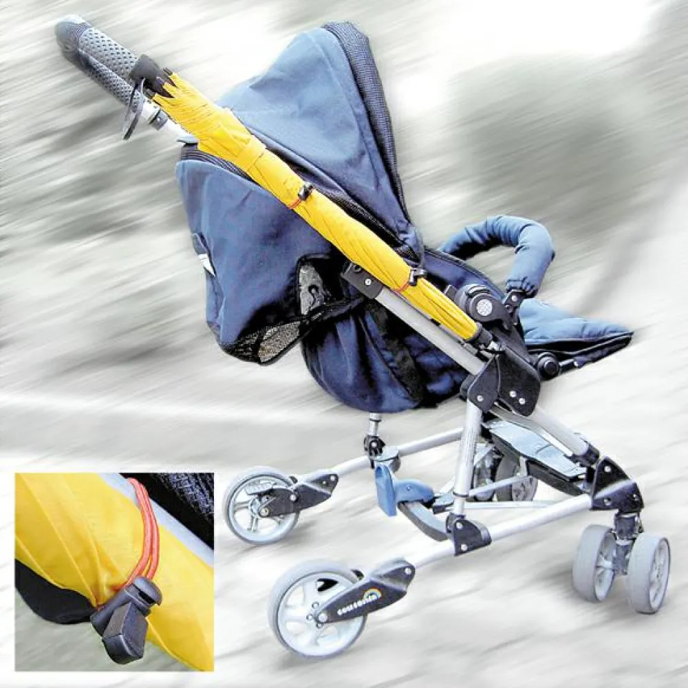 Leicht, elastisch und wetterfest – mit dem Holder-Set kann der Regenschirm bei vollem Rucksack mit auf Tour!