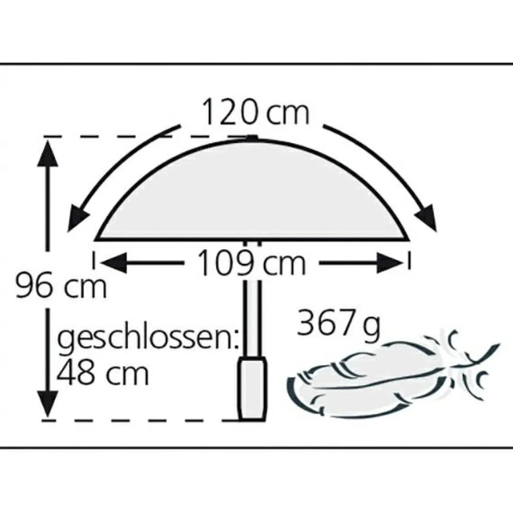 - Länge: 96 cm; Durchmesser geöffnet: 109 cm