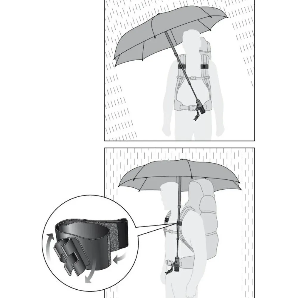 Mit dem Euroschirm Telescope Handsfree ist leicht und lässt mit einem Clip am Rucksack befestigen. So bleiben die Hände auch bei Regenwetter frei. Der Schirm hat einen Teleskopstiel, mit dem die Länge eingestellt werden kann.Durch die Konstruktion aus robusten und wetterfesten Materialien wird der Schirm zu einem zuverlässigen Begleiter bei den unterschiedlichsten Unternehmungen im Freien. Der gerillte Griff aus EVA-Hartschaum liegt auchbei Nässe gut in der Hand.Praktisch, leicht und robust – mit dem Telescope Handsfree hat man die Hände auch im Regen frei!