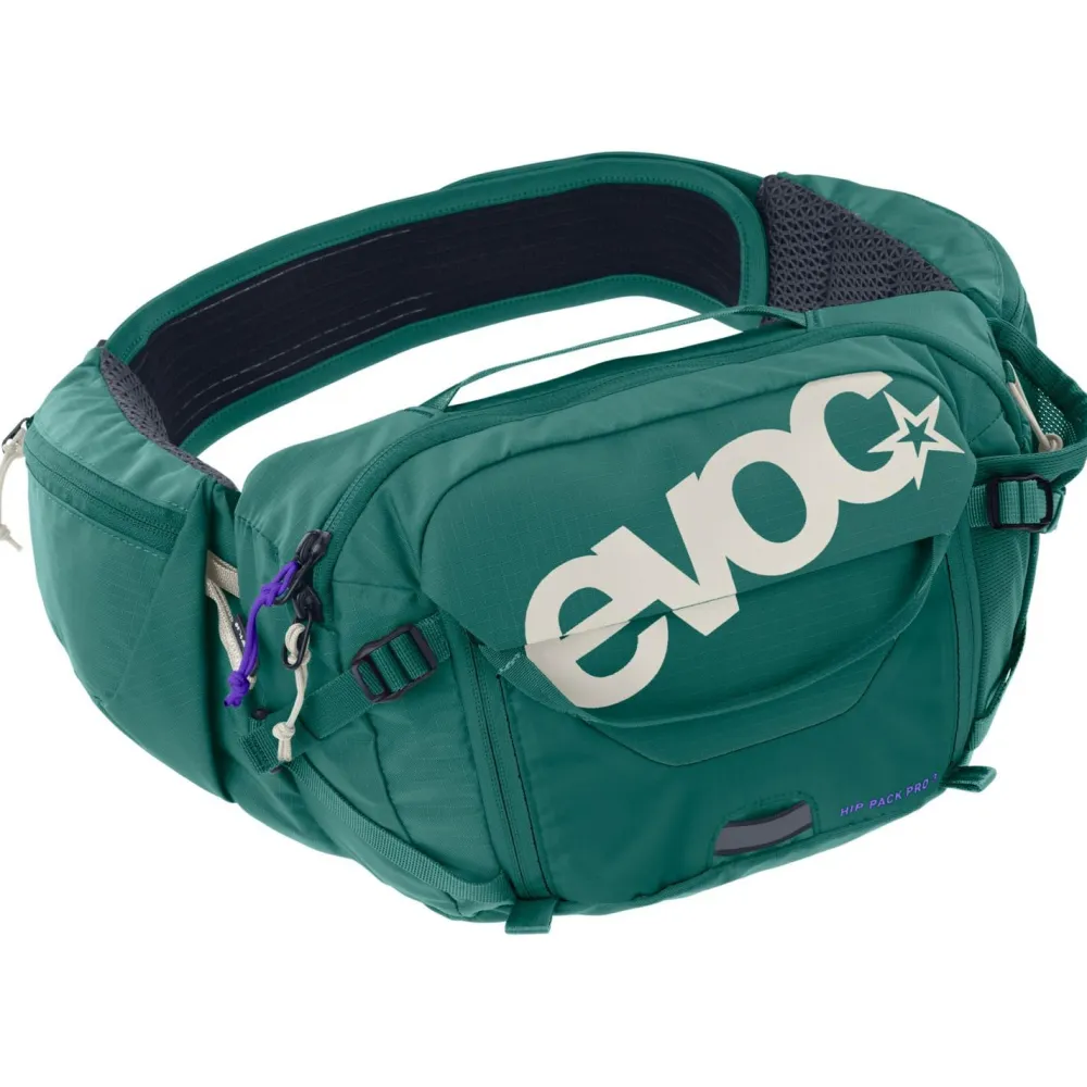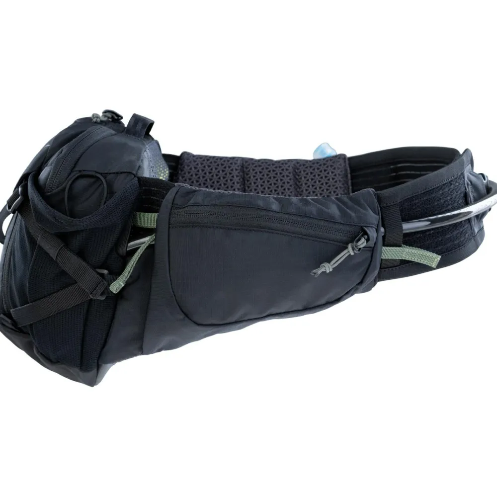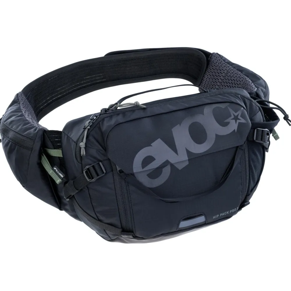 Wenn Du auf Deinem Bike unterwegs bist und ordentlich Stauraum für allerlei Utensilien brauchst, dann solltest Du Dir die Hip Pack Pro 3 von EVOC einmal näher ansehen. Diese geräumige Hüfttasche bietet Dir ausreichend Platz für Werkzeug, Verpflegung oder eine leichte Jacke. Zusätzlich verfügt sie über eine integrierte Trinkblase mit einem Fassungsvermögen von 1,5 Litern.