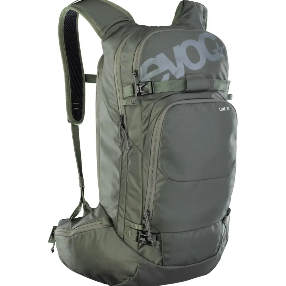 Der Line 20 von Evoc ist ein echter Allrounder für den Wintersport und mach auch abseits der Piste eine gute Figur. Dank der breiten Hüftflossen schmiegt er sich perfekt an den Körper an und sorgt für einen optimalen Halt. Der gepolsterte Rücken sorgt zudem für viel Komfort und eine gute Belüftung.