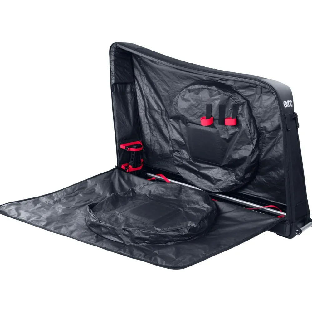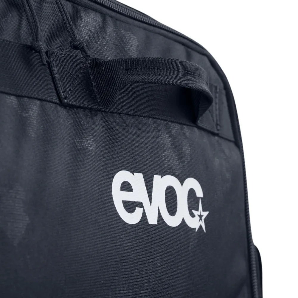 Die Mountain Bike Bag Pro von Evoc erleichtert Dir den Transport Deines Bikes enorm, weil Du den Lenker nur um 90 Grad drehen musst. Gerade bei integrierten Cockpits oder innen verlegten Kabeln sparst Du so Zeit und vermeidest unnötige Demontage. Nach dem Ausbau von Laufrädern und Pedalen fixierst Du Dein Rad auf dem mitgelieferten Bike Stand Pro – das sorgt für Stabilität und eine sichere Position im Koffer.