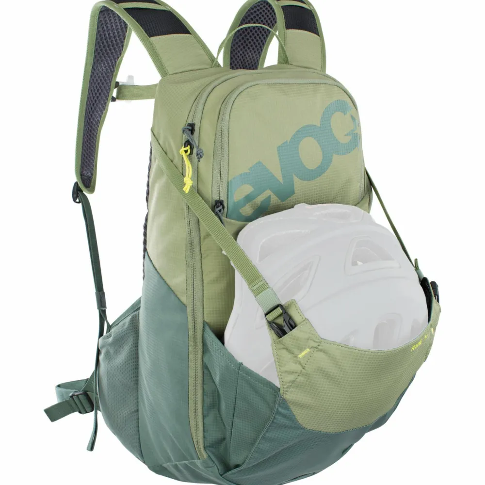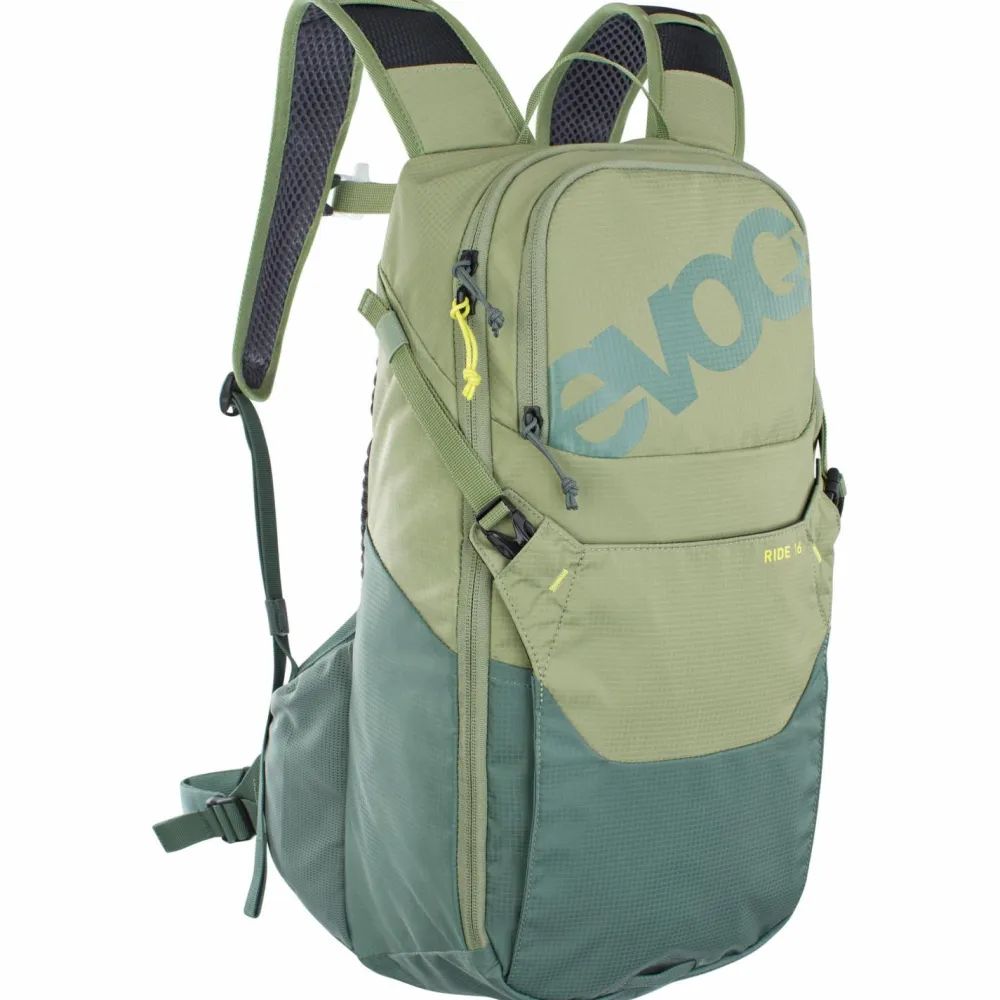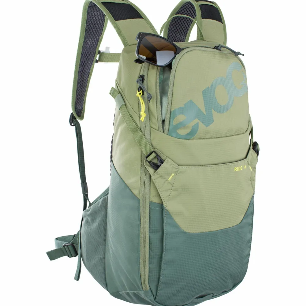 Leicht, kompakt, bequem: Mit dem Ride von Evoc hat man auch auf der anstrengendsten Bike-Tour alles bestens geschultert! Der Bike-Rucksack kommt mit einem robusten, stark wasserabweisenden Obermaterial und überzeugt durch clevere Features und top Ventilation. Das Hauptfach packt bis zu 16 Liter, und wird durch ein drei Liter Trinkblasenfach, ein internes Organizer-Werkzeugfach, ein Brillenfach, ein Smartphonefach, ein Fach für Snacks, elastische Seitentaschen, eine Flaschenhalterung, eine Helmhalterung sowie eine Hüftgurttasche ergänzt.