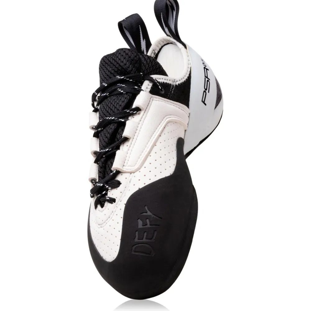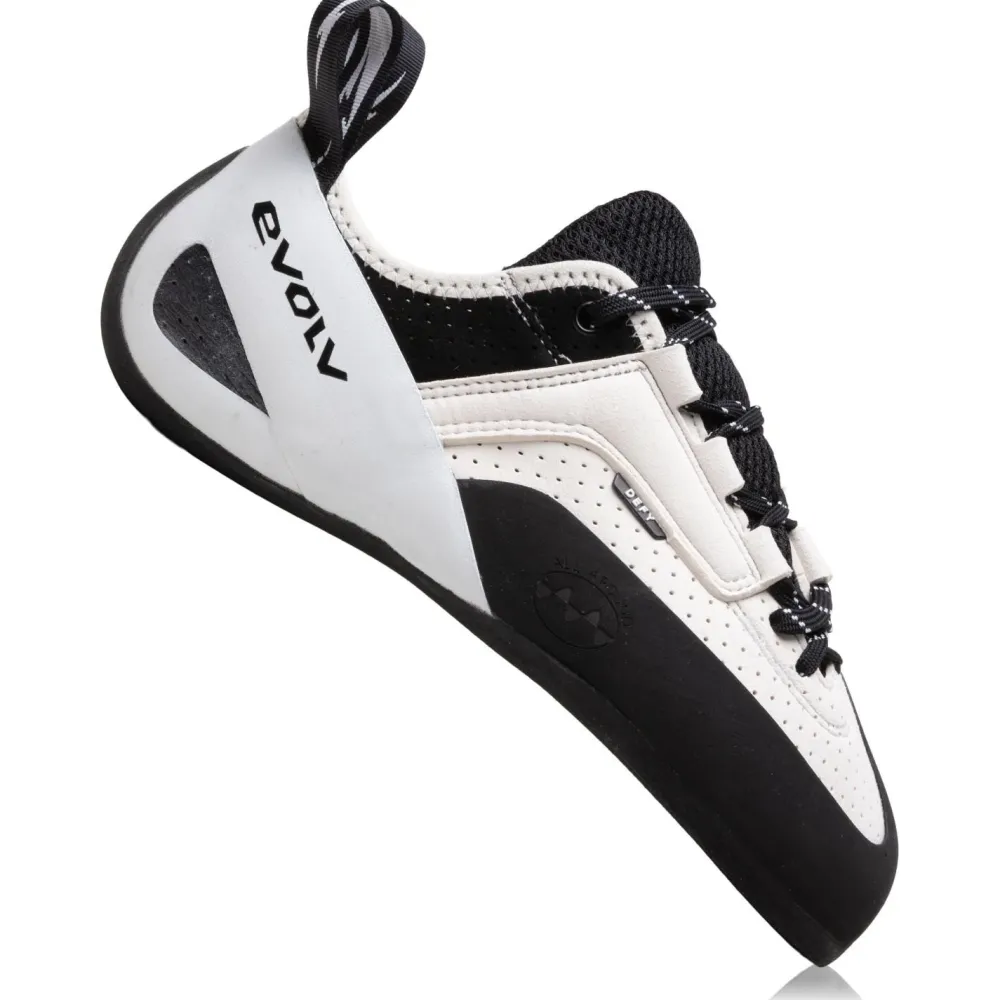 Der Defy Lace verfügt über eine praktische geteilte Laschenöffnung, die das An- und Ausziehen erleichtert. Die Schnürung ist nicht nur sicher, sondern bietet auch einen individuellen Sitz bei gleichzeitig hoher Sensitivität – perfekt für das feine Gespür beim Klettern. Außerdem sorgt die weiche Fersenkonstruktion für Komfort, sodass Du Dich ganz auf Deinen nächsten Zug konzentrieren kannst.