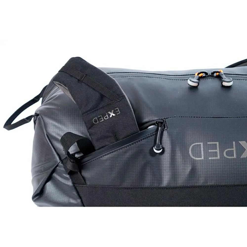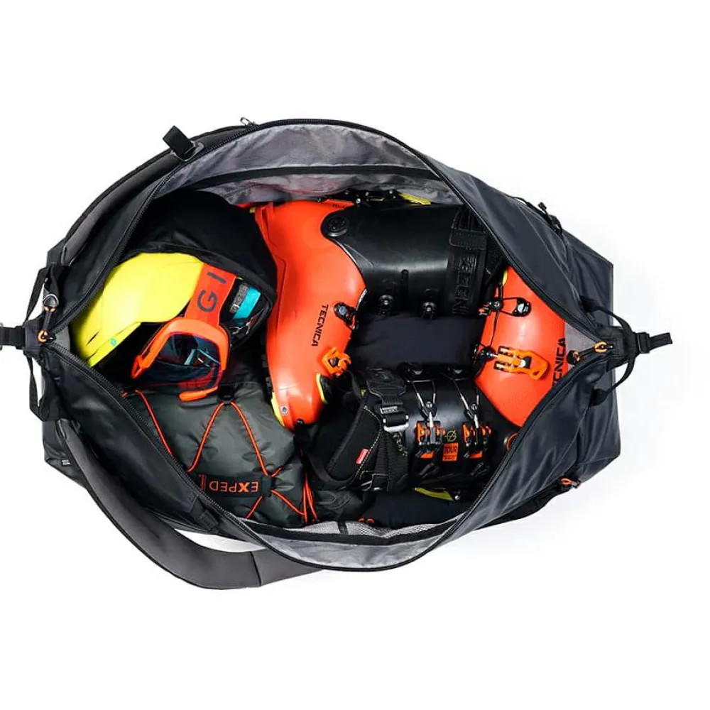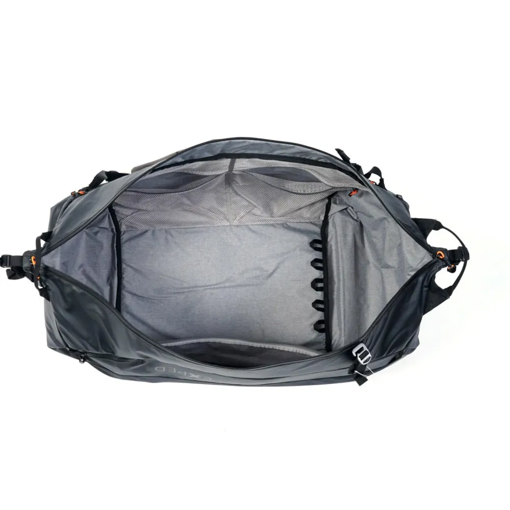 Bis zu 20 kg Ausrüstung und Gepäck lassen sich mit dem Radical 60 Reiserucksack von Exped bequem transportieren. Dabei verfügt der Reiserucksack sowohl über ein klassisches Tragesystem mit gepolsterten Schulterträgern, Brustgurt und Hüftgurt, als auch über einen Tragegurt. So kann der Rucksack auch als Duffle Bag bequem über die Schulter gehängt werden. Außerdem kann das Tragesystem auch komplett verstaut werden und erleichtert so das Handling im Zug und Flugzeug. Mit einem langen Reißverschluss auf der Rückseite lässt sich der Radical 60 weit öffnen und erlaubt vollen Zugriff auf das geräumige Hauptfach. Dank wetterfester Konstruktion bleibt der Inhalt bestens vor Nässe geschützt.