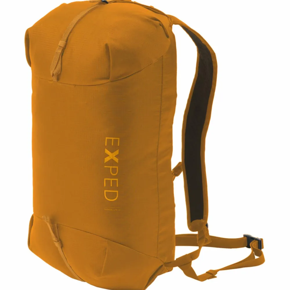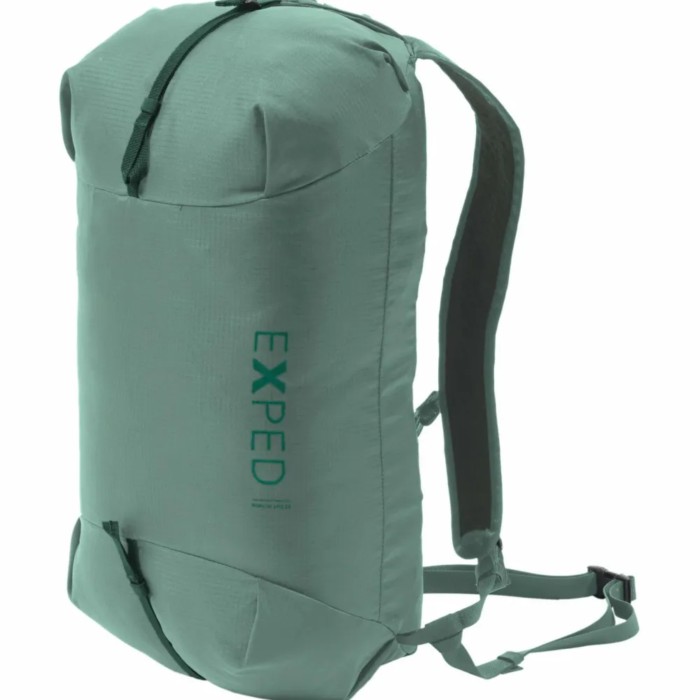 Je nach Situation kann der Radical Lite 25 Reiserucksack von Exped entweder als vollwertiger Rucksack getragen werden, oder als praktische Duffle Bag. Dafür verfügt der Daypack über minimalistisch designte Schulterträger und eine Kombination aus abnehmbarem Brustgurt und Hüftgurt. Der kompakt geschnittene Rucksack ist aus 100D Triple Ripstop Nylon gefertigt das sehr robust und gleichzeitig ausgesprochen leicht ist. Dank PU-Beschichtung und 1500 mm Wassersäule bleiben die bis zu 25 Liter Inhalt bestens vor Regen und Nässe geschützt. Die leichte Bauweise erlaubt eine Zuladung von maximal 5 kg Gepäck und Ausrüstung. Deshalb kann der Radical Lite 25 auch bestens auf zusätzliche Polsterungen verzichten.
